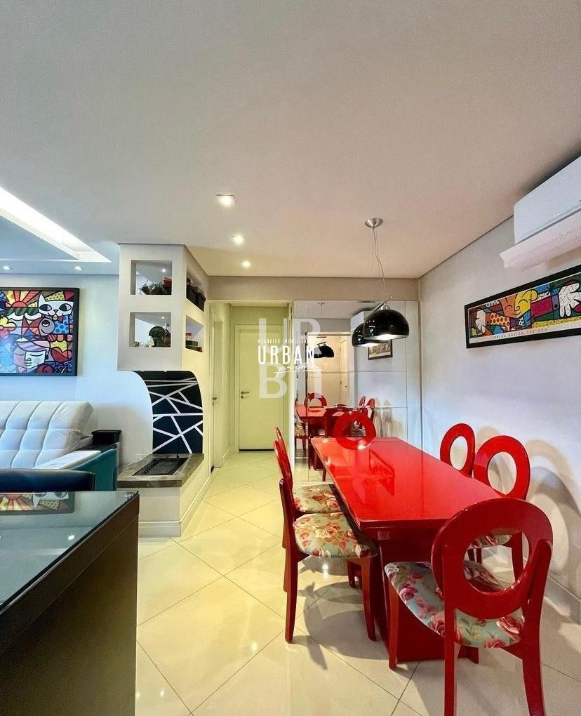 Descrição › Apartamento no bairro Pio X, com 2 dormitórios sendo 01 suíte, sala 2 ambientes com lareira, sala e cozinha integradas, sacada gourmet fechada, box para 2 veículos, semi mobiliado. Prédio com amplo terraço coletivo, salão de festas, quiosque com forno de pizza e churrasqueira, salão de festas, fitness, brinquedoteca, portaria remota.