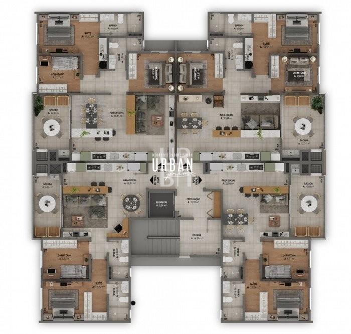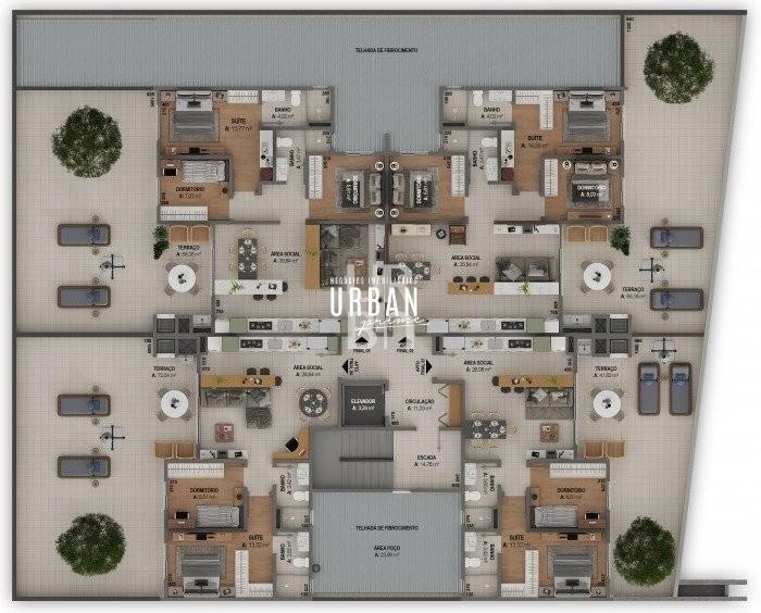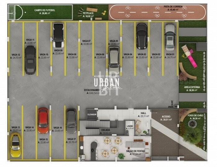 Descrição › Apartamentos em Construção, de 2 e 3 dormitórios, ambos com suíte e sacada gourmet com churrasqueira, espera para split, rebaixe em gesso, esquadrias em PVC e vagas de garagem estendidas. Condomínio com elevador, salão de festas mobiliado e decorado, hall de entrada, pet place, playground, fogo de chão, mini campo de futebol.