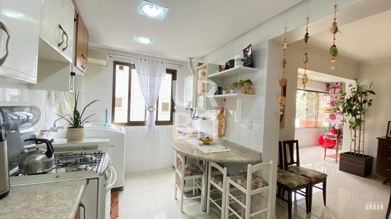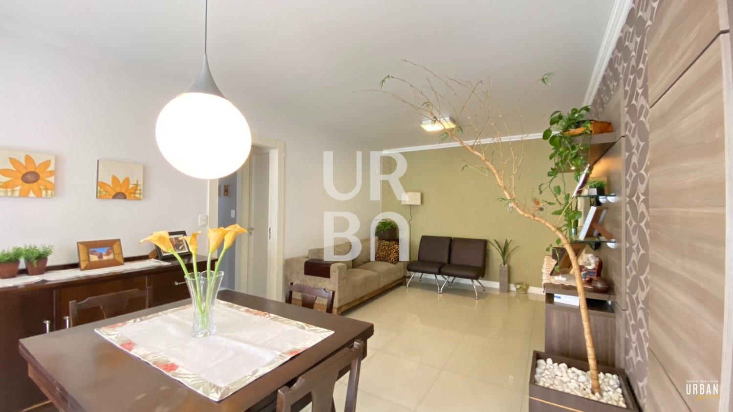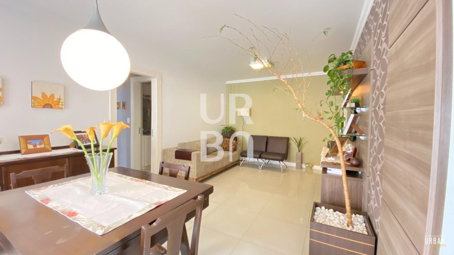 Descrição › Apartamento central semi mobiliado, 03 dormitórios sendo 01 suíte, sacada fechada com churrasqueira, sala 02 ambientes com cozinha integrada, 01 vaga de garagem, banheiro social, espera de calefação. Prédio com elevador, salão de festas e jardins.
