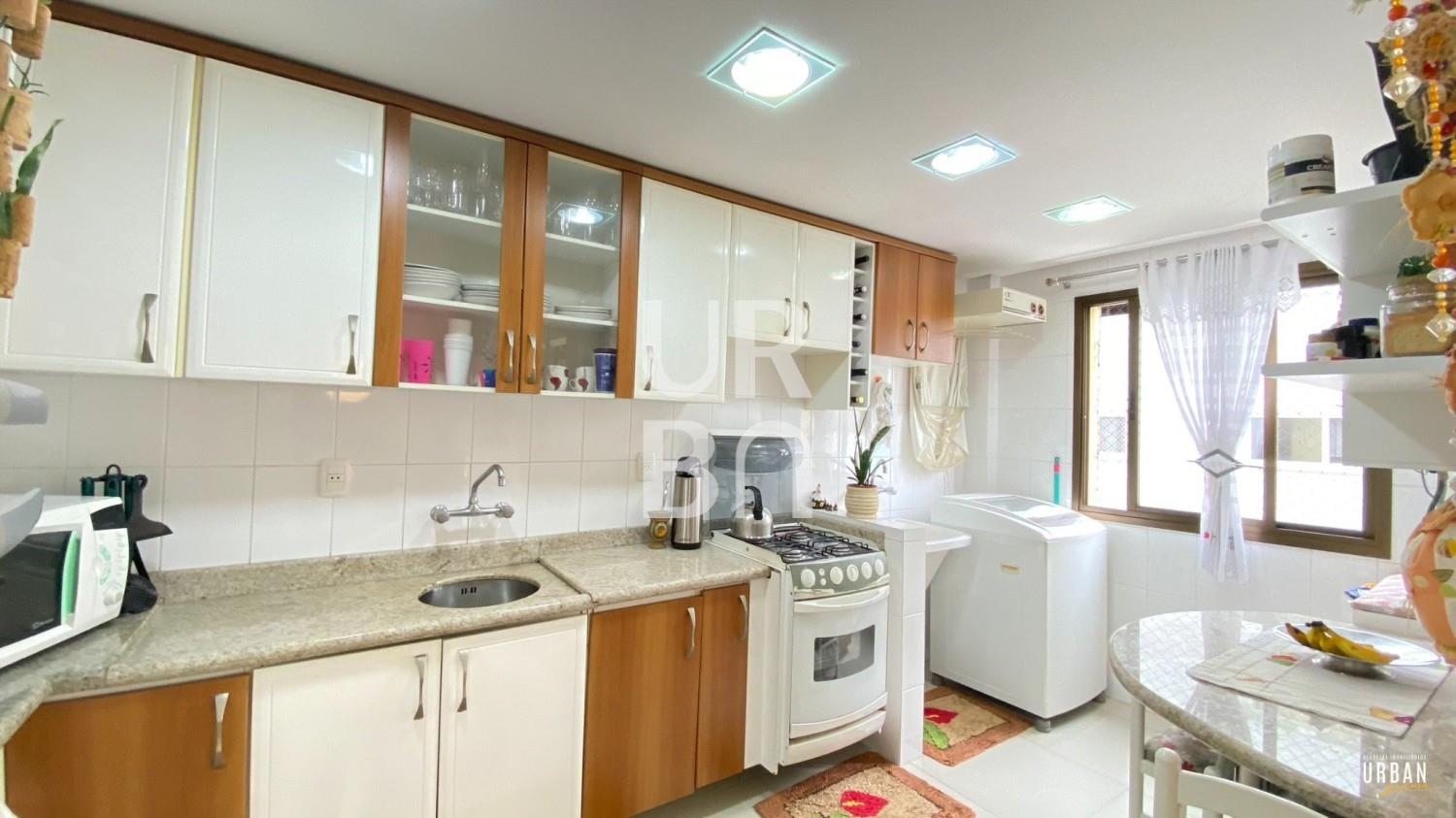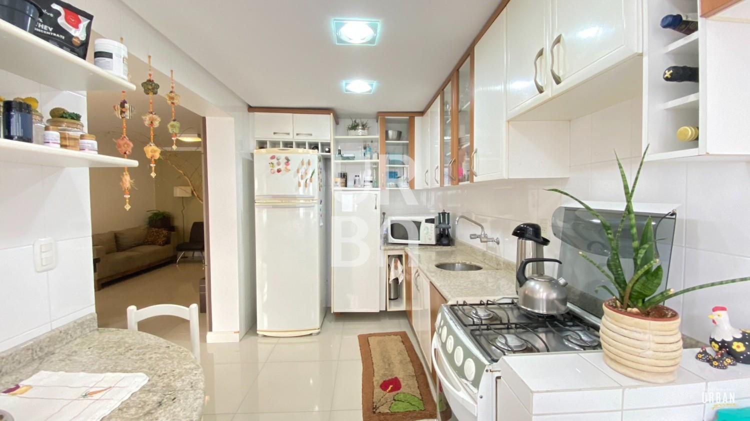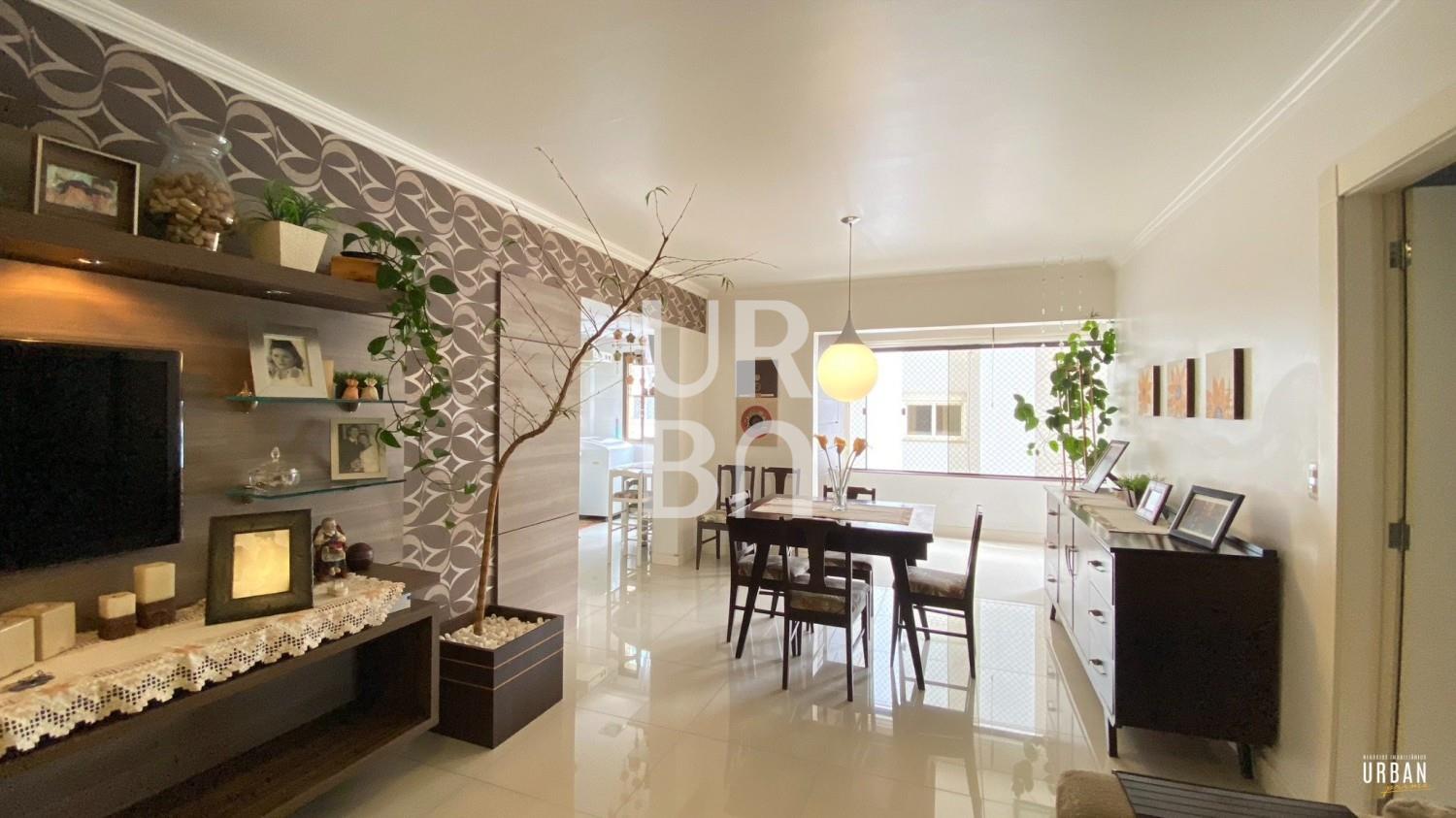 Descrição › Apartamento central semi mobiliado, 03 dormitórios sendo 01 suíte, sacada fechada com churrasqueira, sala 02 ambientes com cozinha integrada, 01 vaga de garagem, banheiro social, espera de calefação. Prédio com elevador, salão de festas e jardins.