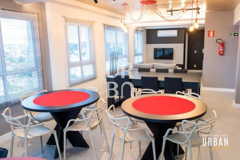 Descrição › Apartamento mobiliado e decorado com 1 dormitório, sala de estar, jantar e cozinha integrados, área de serviço e 1 vaga de garagem.