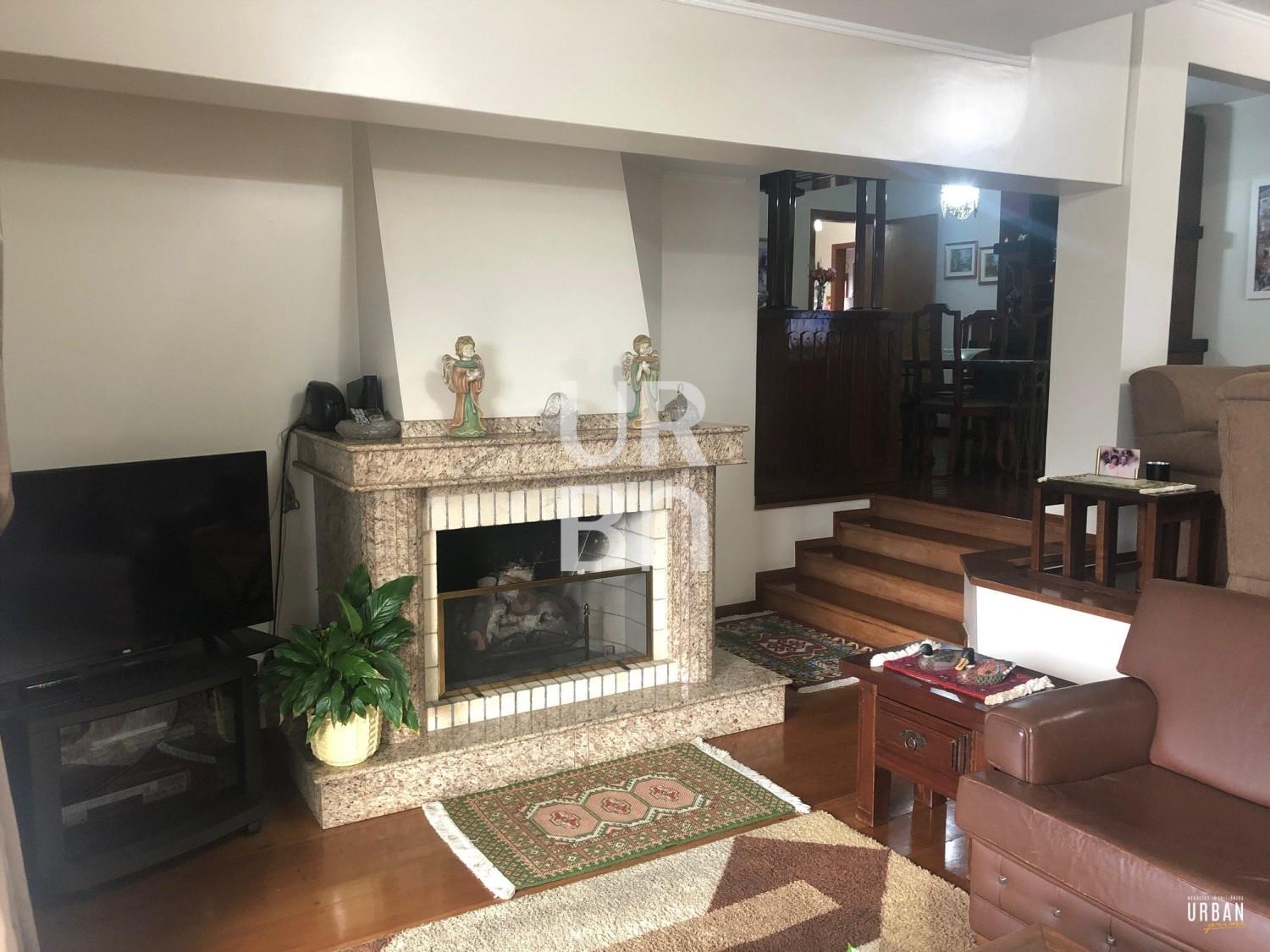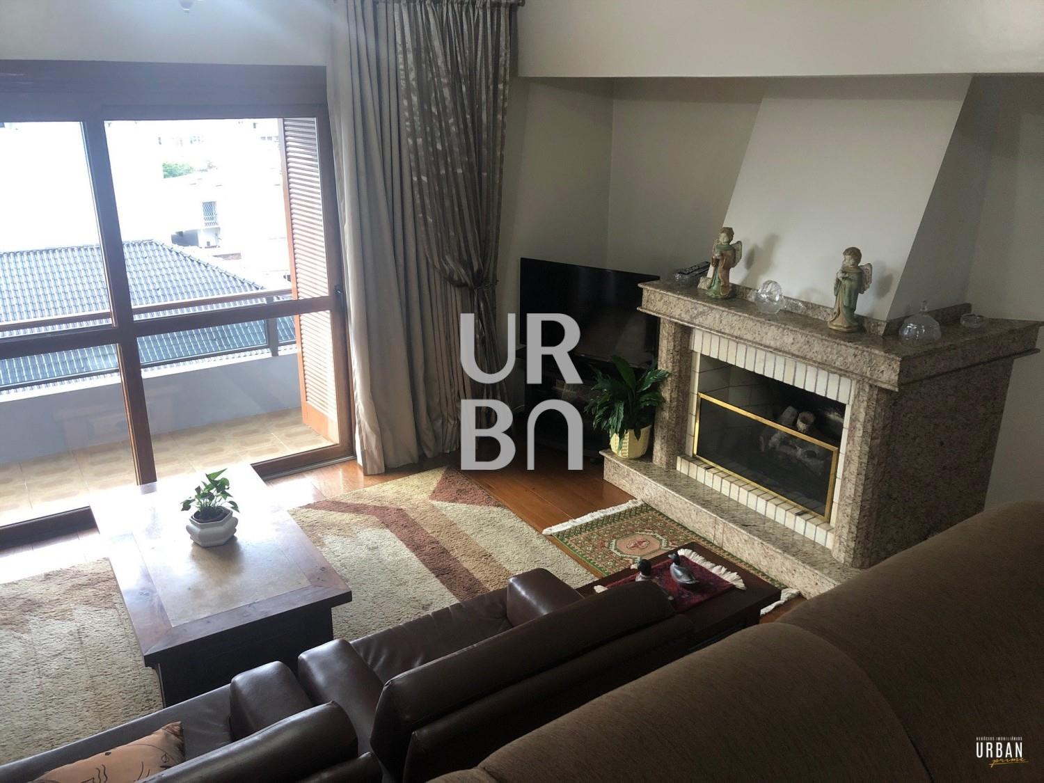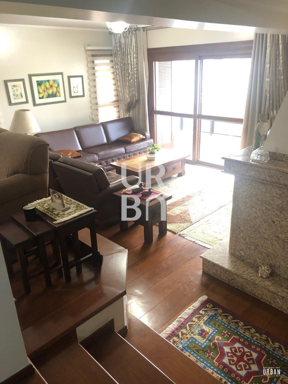 Descrição › Amplo apartamento com 4 dormitórios, sendo 1 suíte, sala 3 ambientes em desnível, lareira, copa cozinha, área de serviços com churrasqueira e banheiro auxiliar, 2 vagas de garagem.