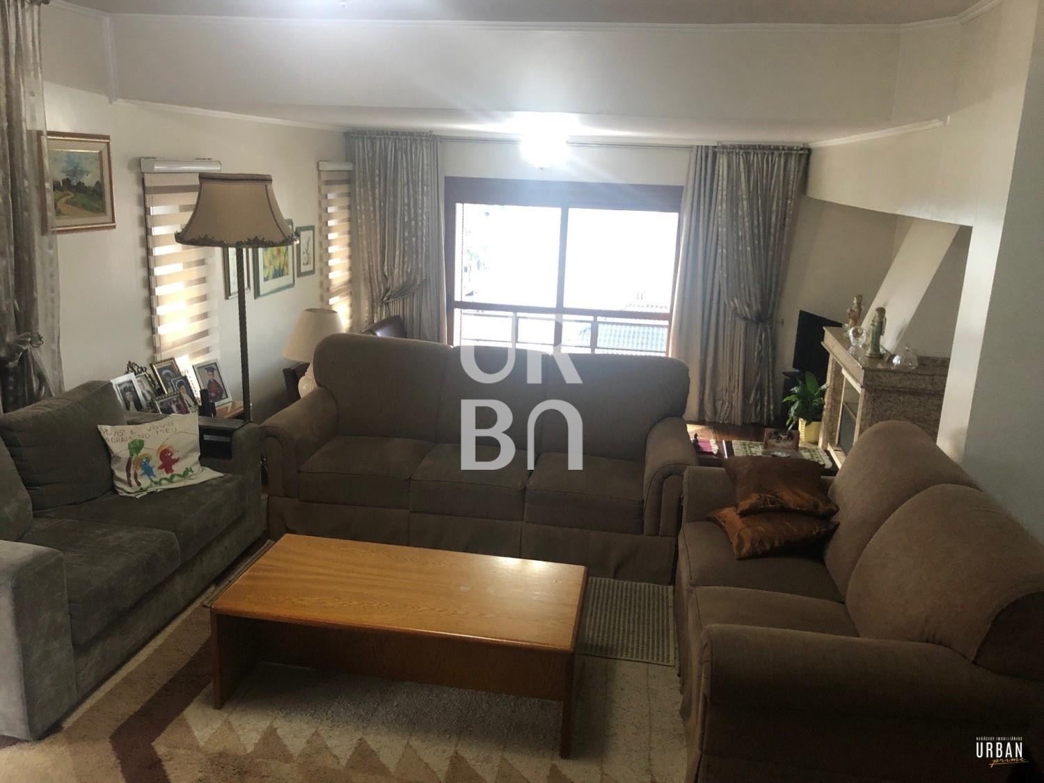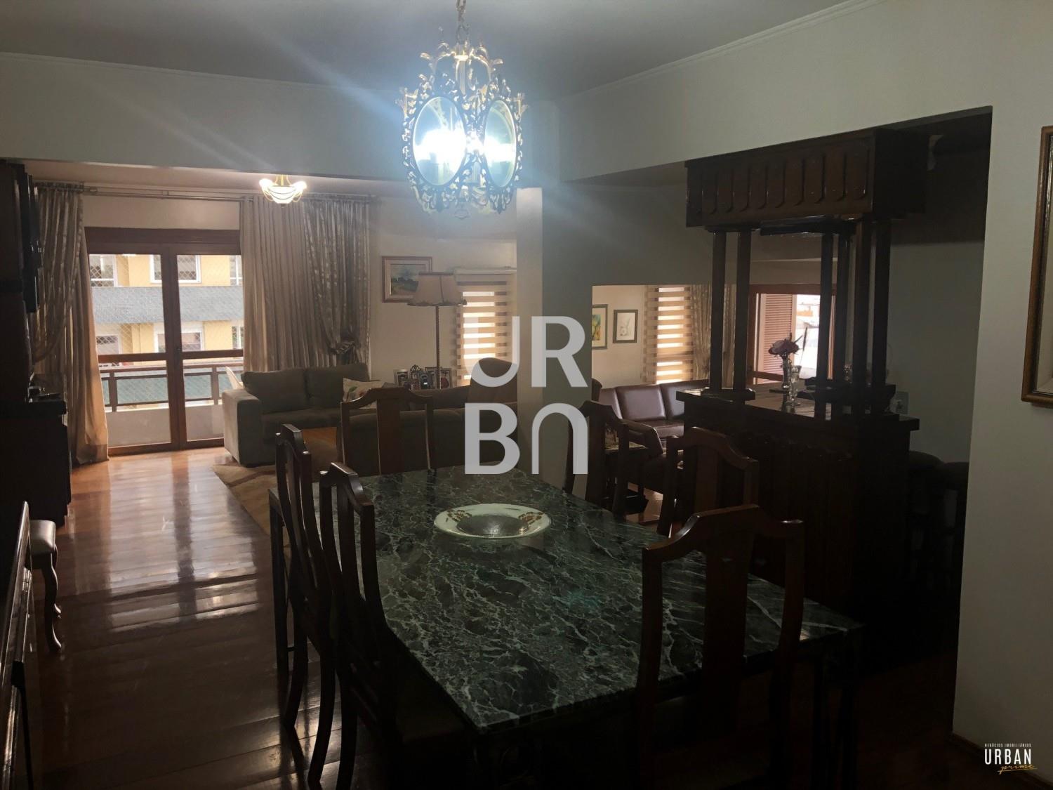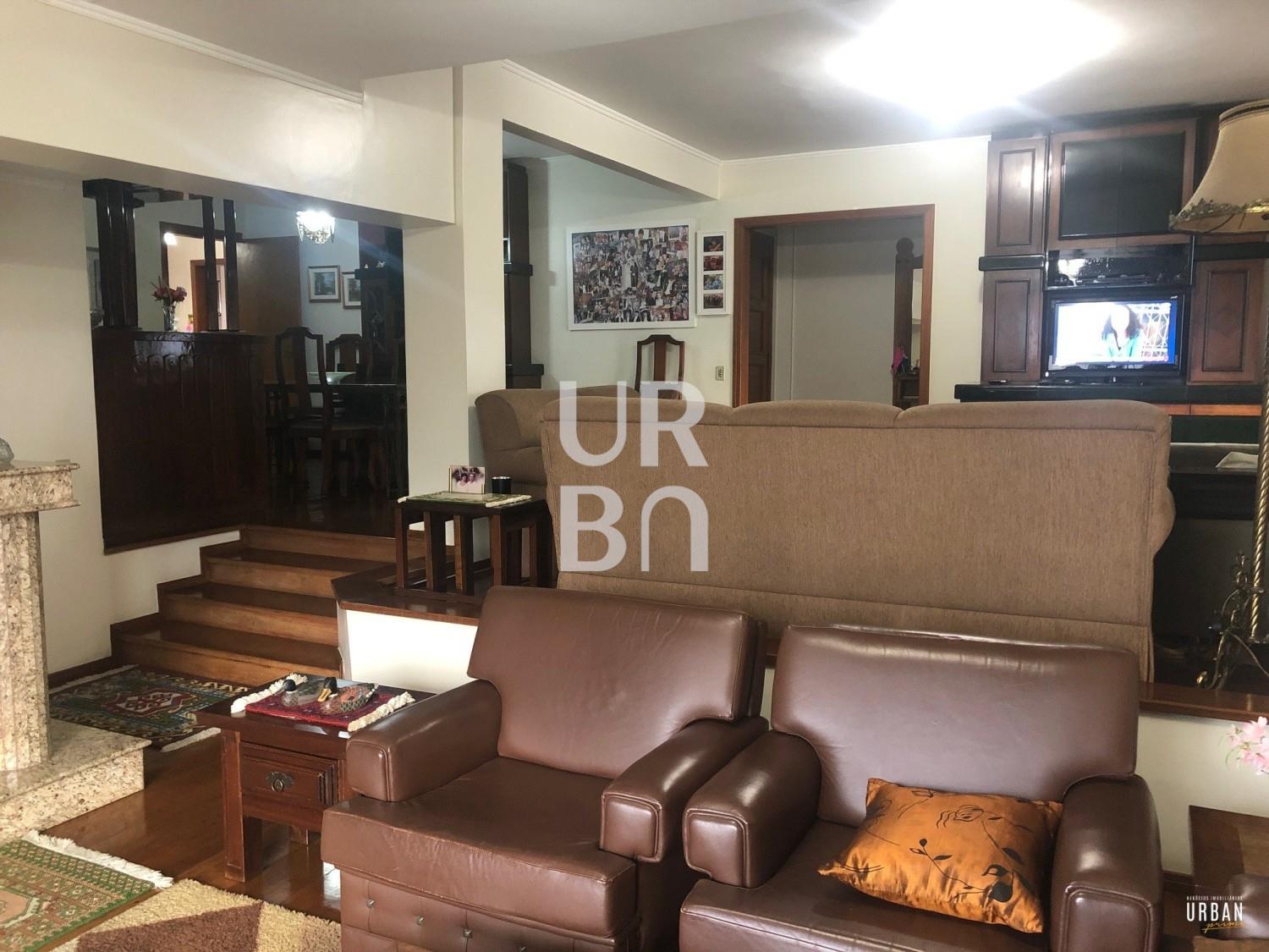 Descrição › Amplo apartamento com 4 dormitórios, sendo 1 suíte, sala 3 ambientes em desnível, lareira, copa cozinha, área de serviços com churrasqueira e banheiro auxiliar, 2 vagas de garagem.