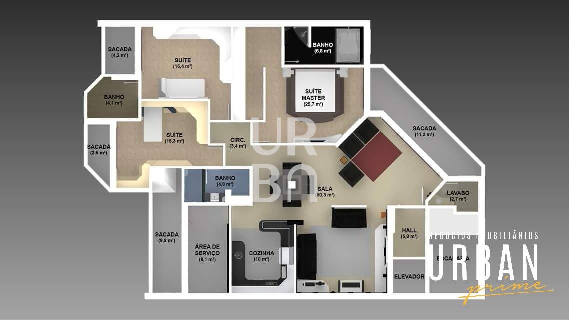 Excelente apartamento mobiliado com 3 suítes com sacada, copa cozinha,