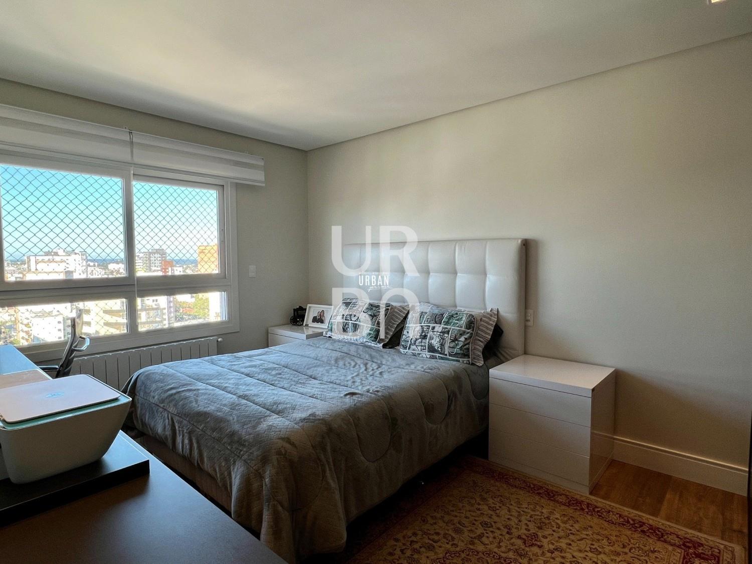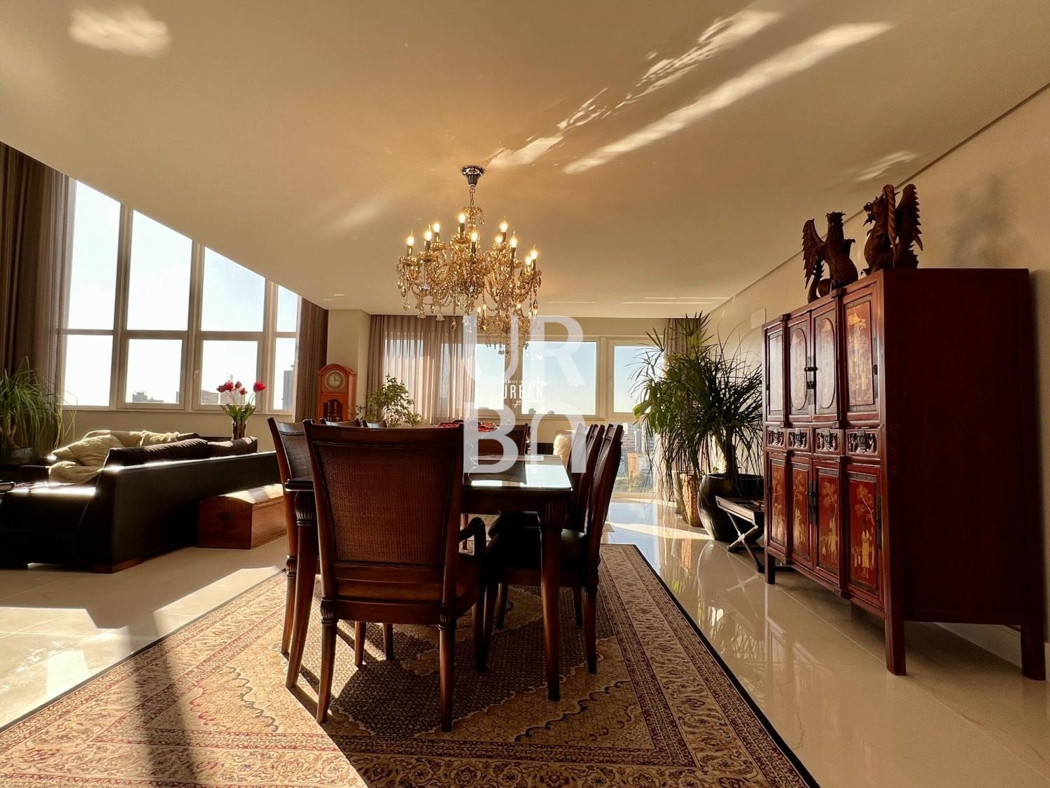 Descrição › Apartamento. semimobiliado no Bairro Exposição, com 04 suítes, sendo 01 master com hidro, closet e sacada, living com lareira e pé direito duplo, lavabo, cozinha com churrasqueira e sala de estar, lavanderia e 05 vagas de garagem. Empreendimento com espaço beauty, SPA, futebol club, fitness, kids place, gourmet externo com forno de pizza e churrasqueira, garden louge com estar de fogo, piscina, elevador codificado.