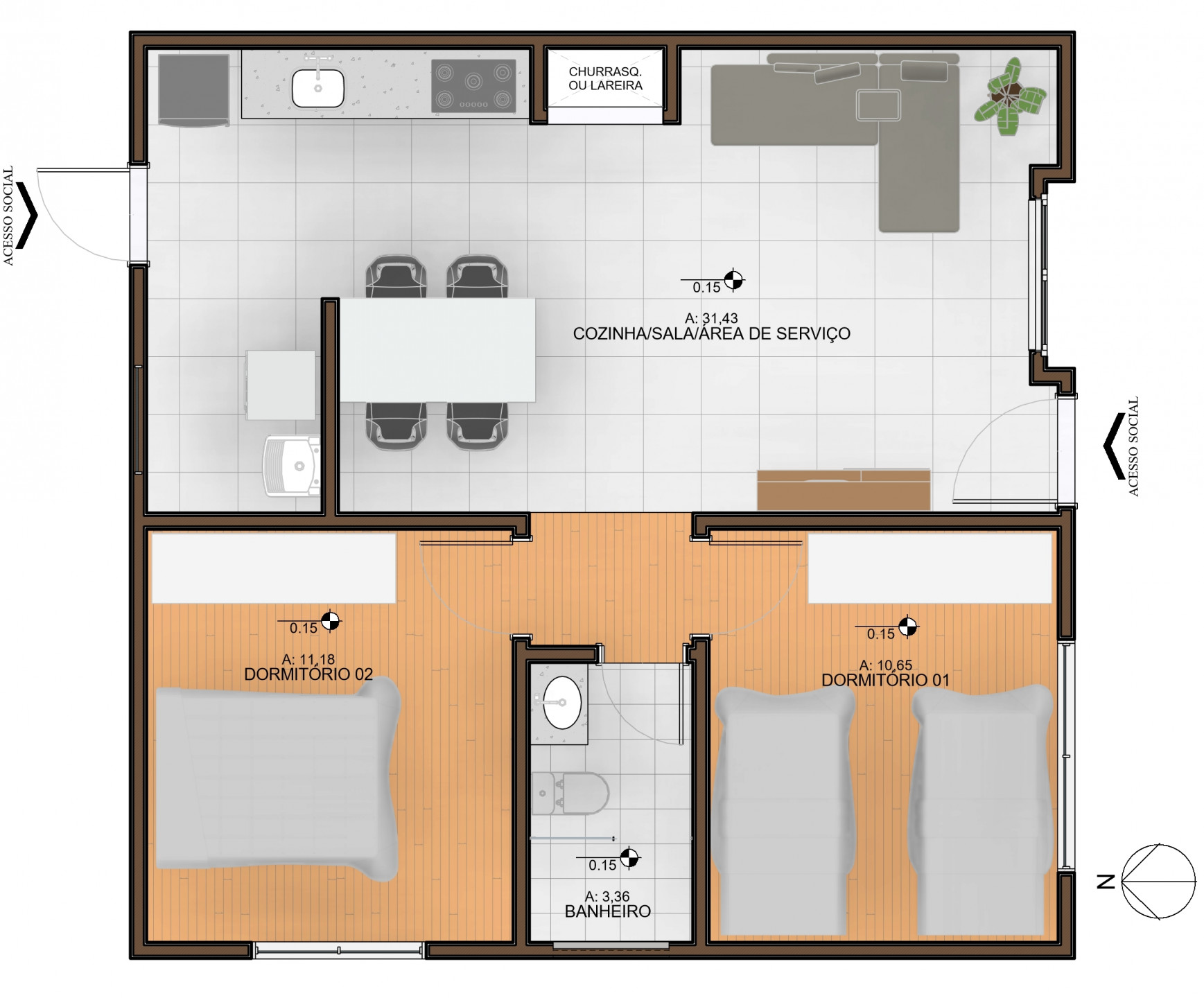 65m2 privativos