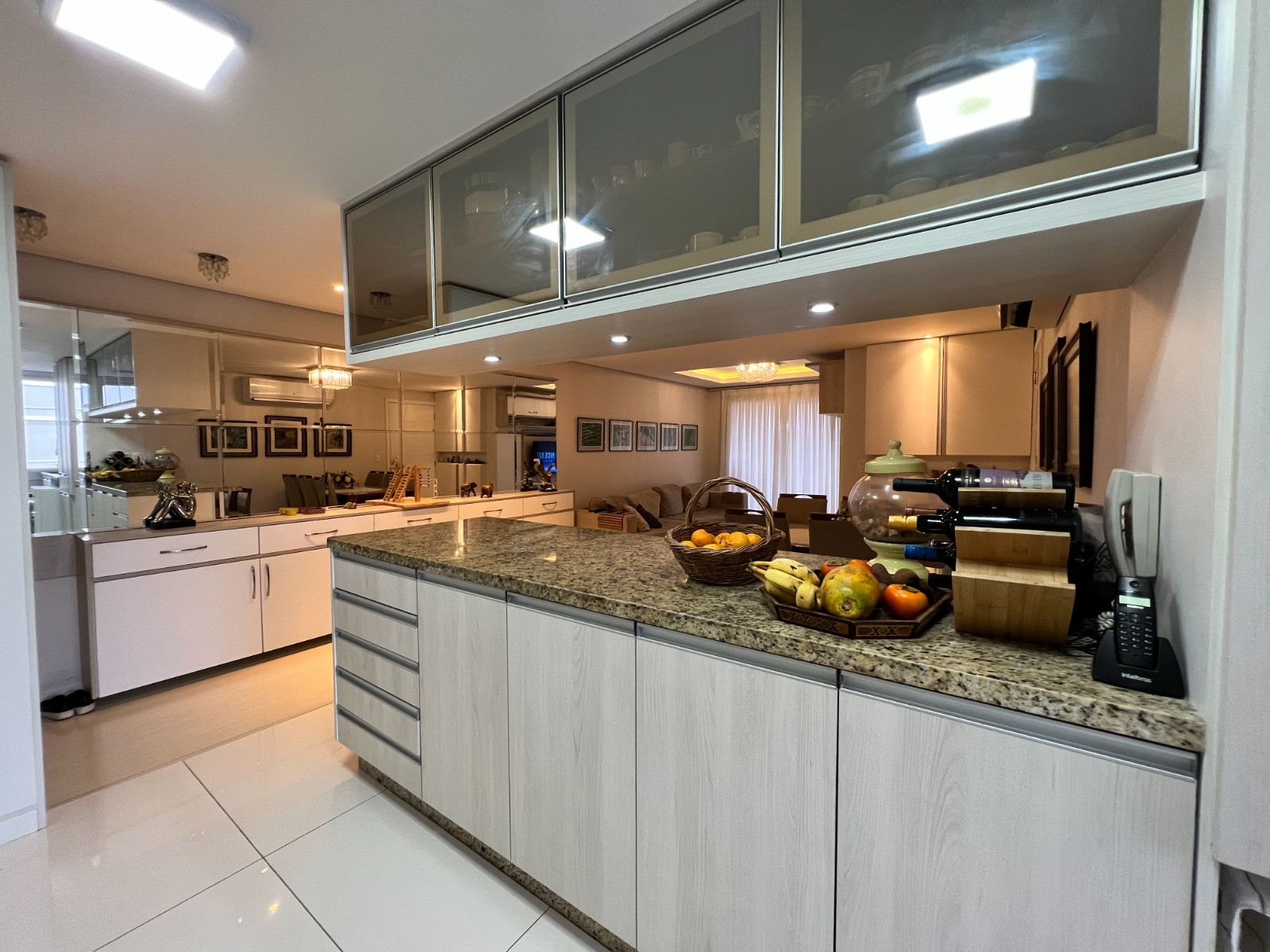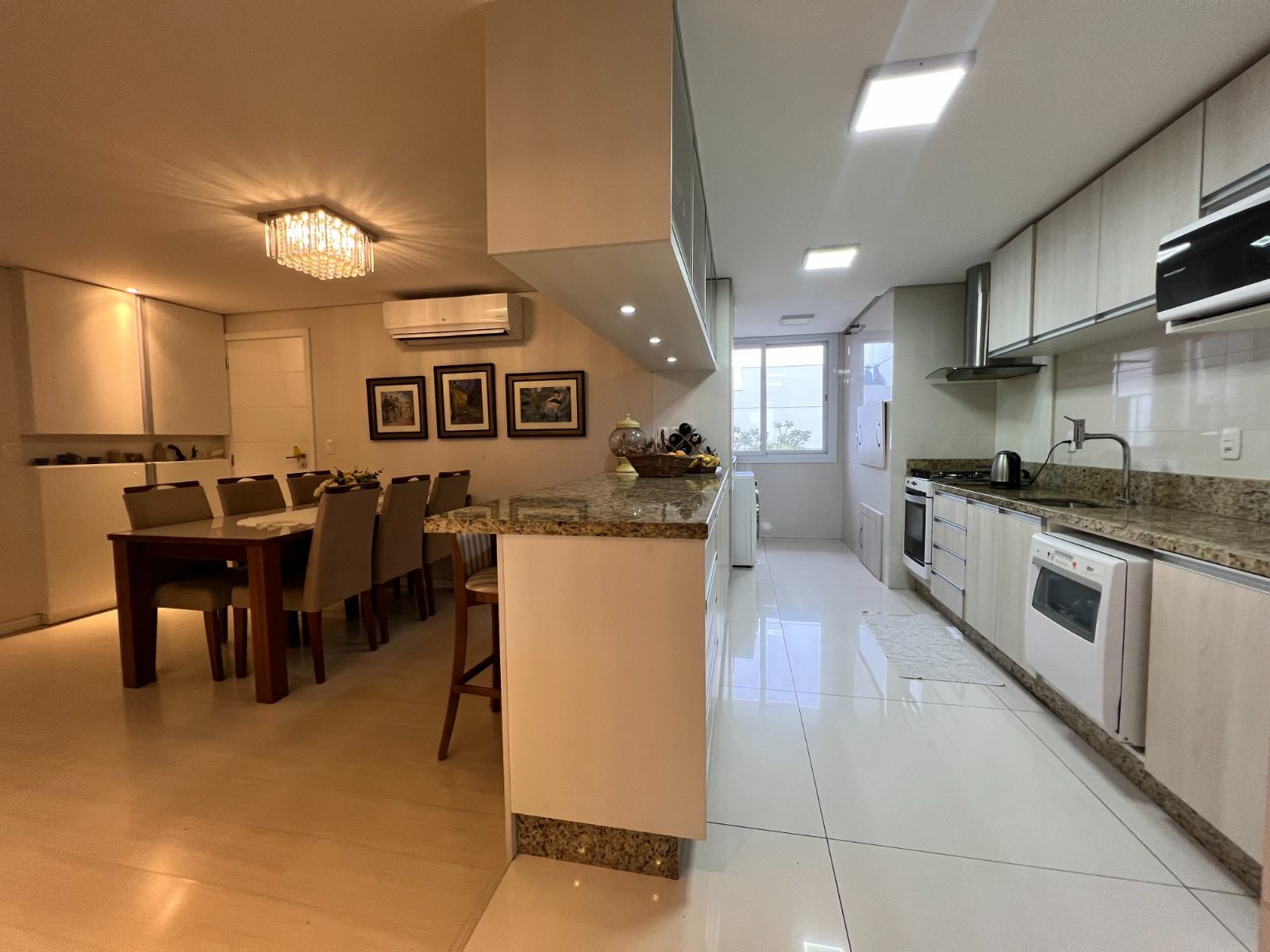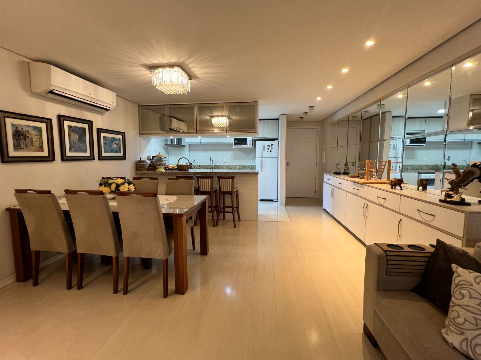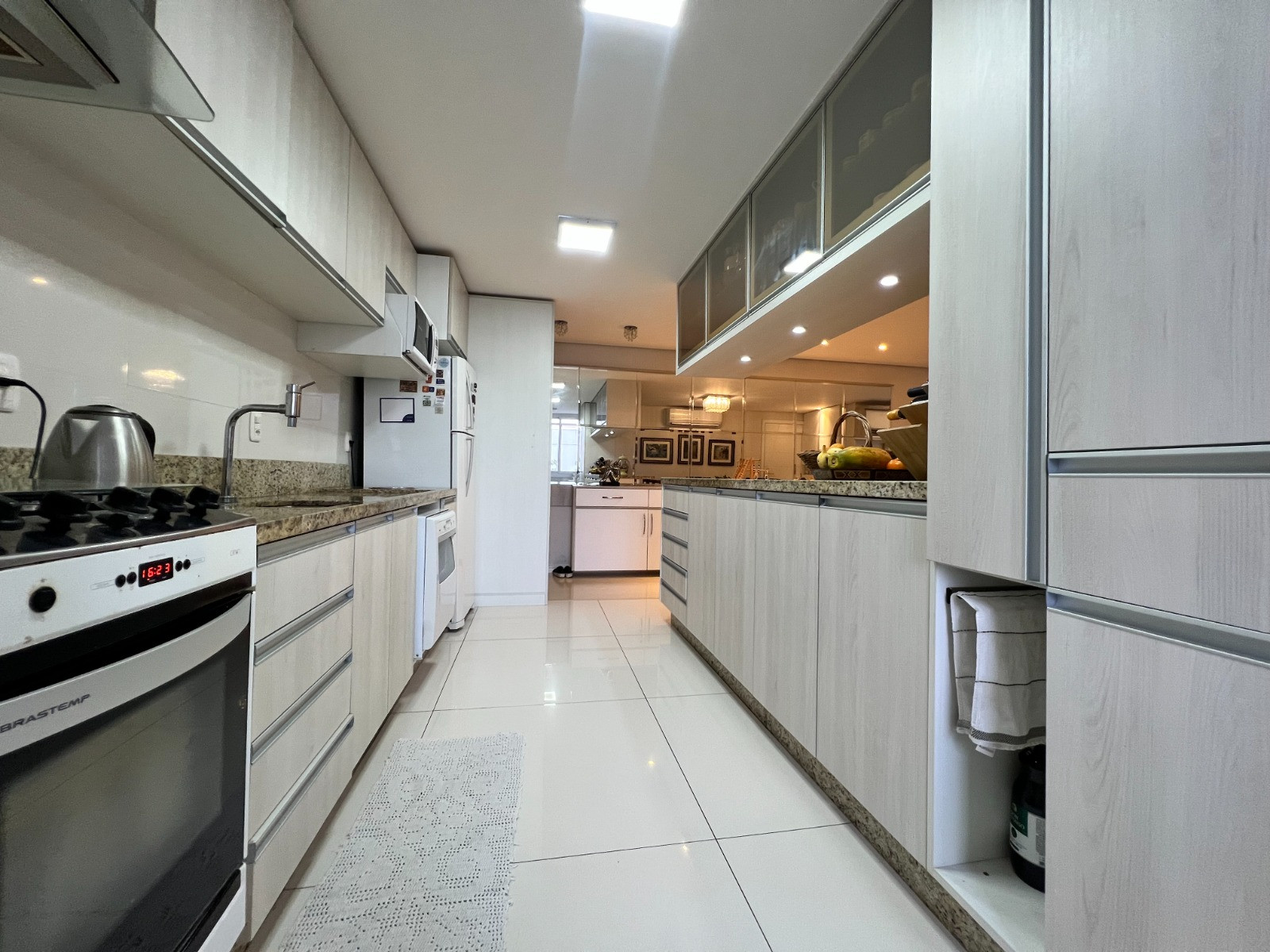 Descrição › Apartamento com 03 dormitórios, sendo 01 suíte, banheiro social, sacada fechada em vidro, amplo living com sala de estar e jantar, cozinha e área de serviço, churrasqueira com bifeteira e vaga dupla de garagem.