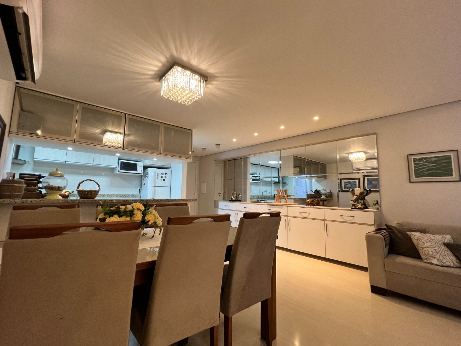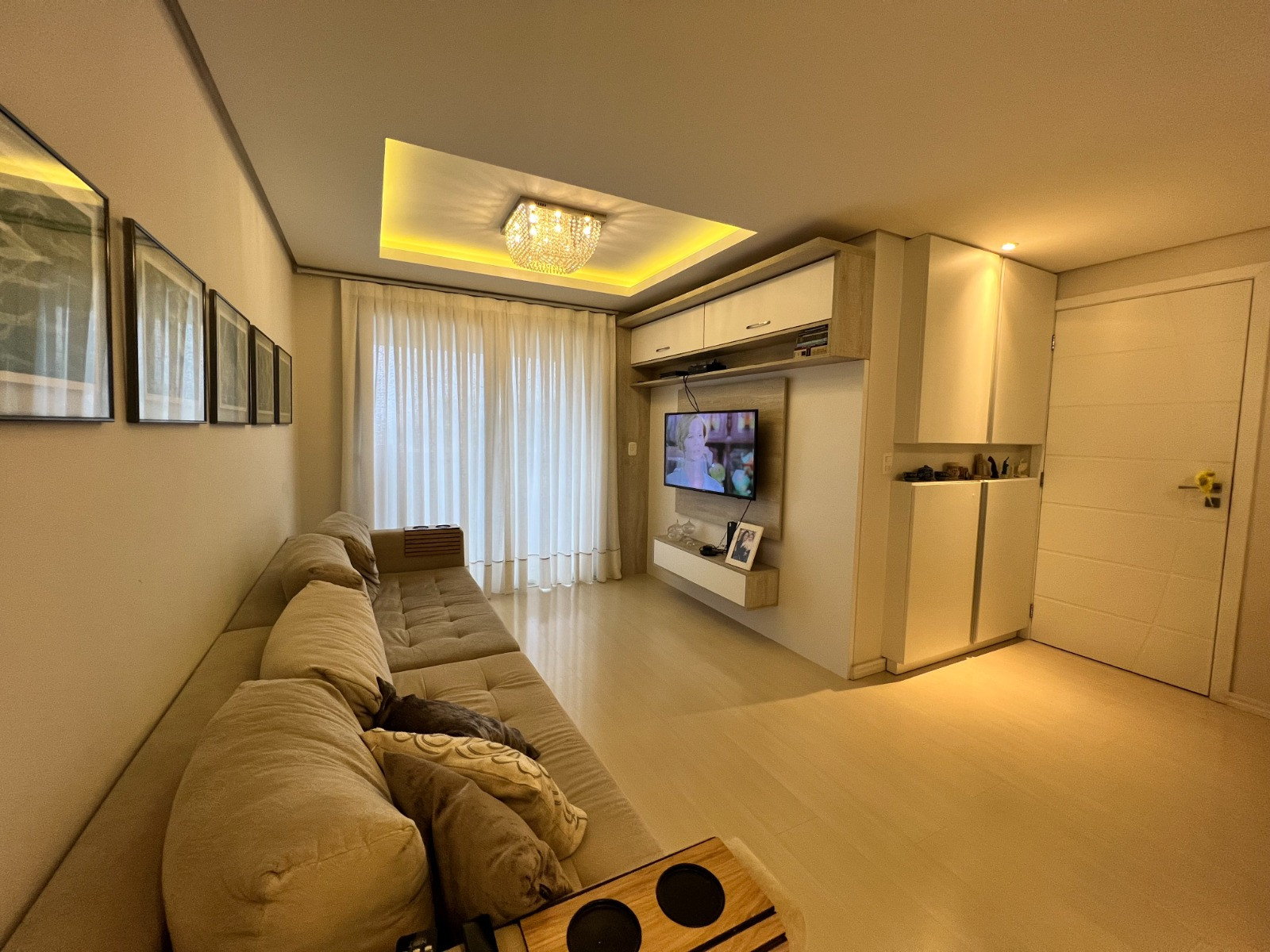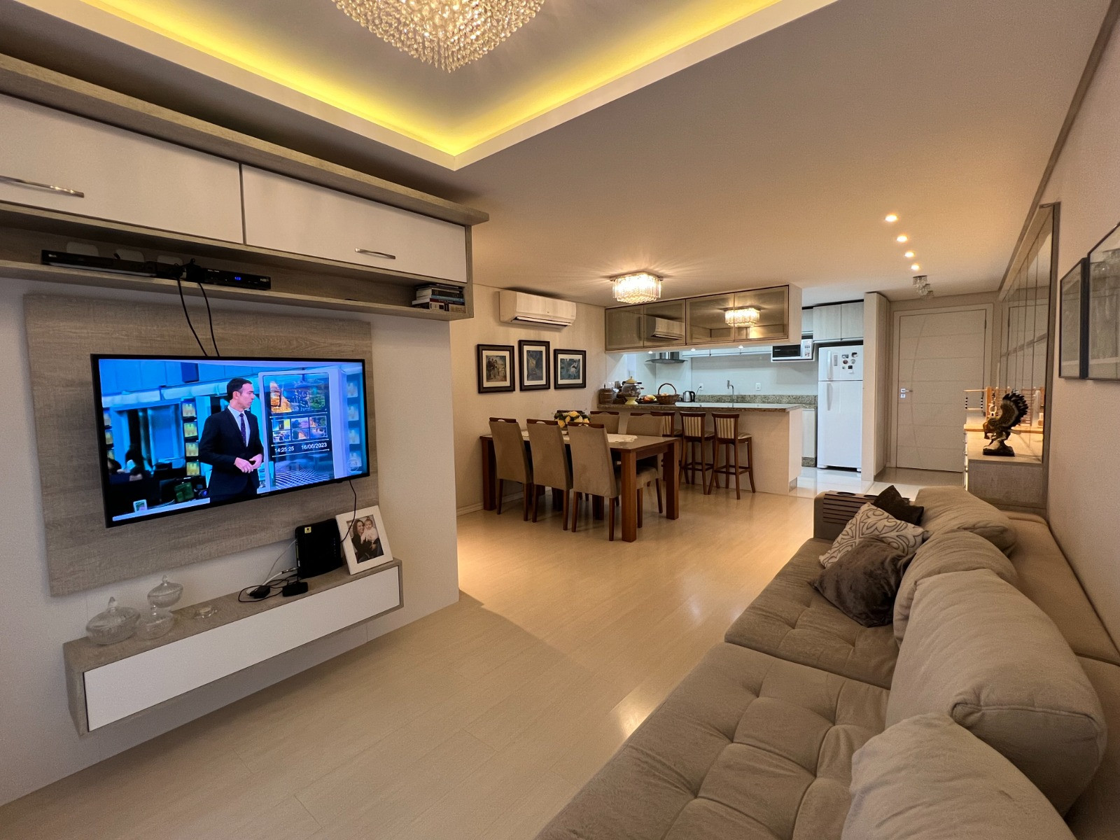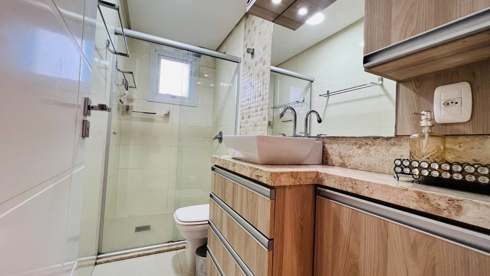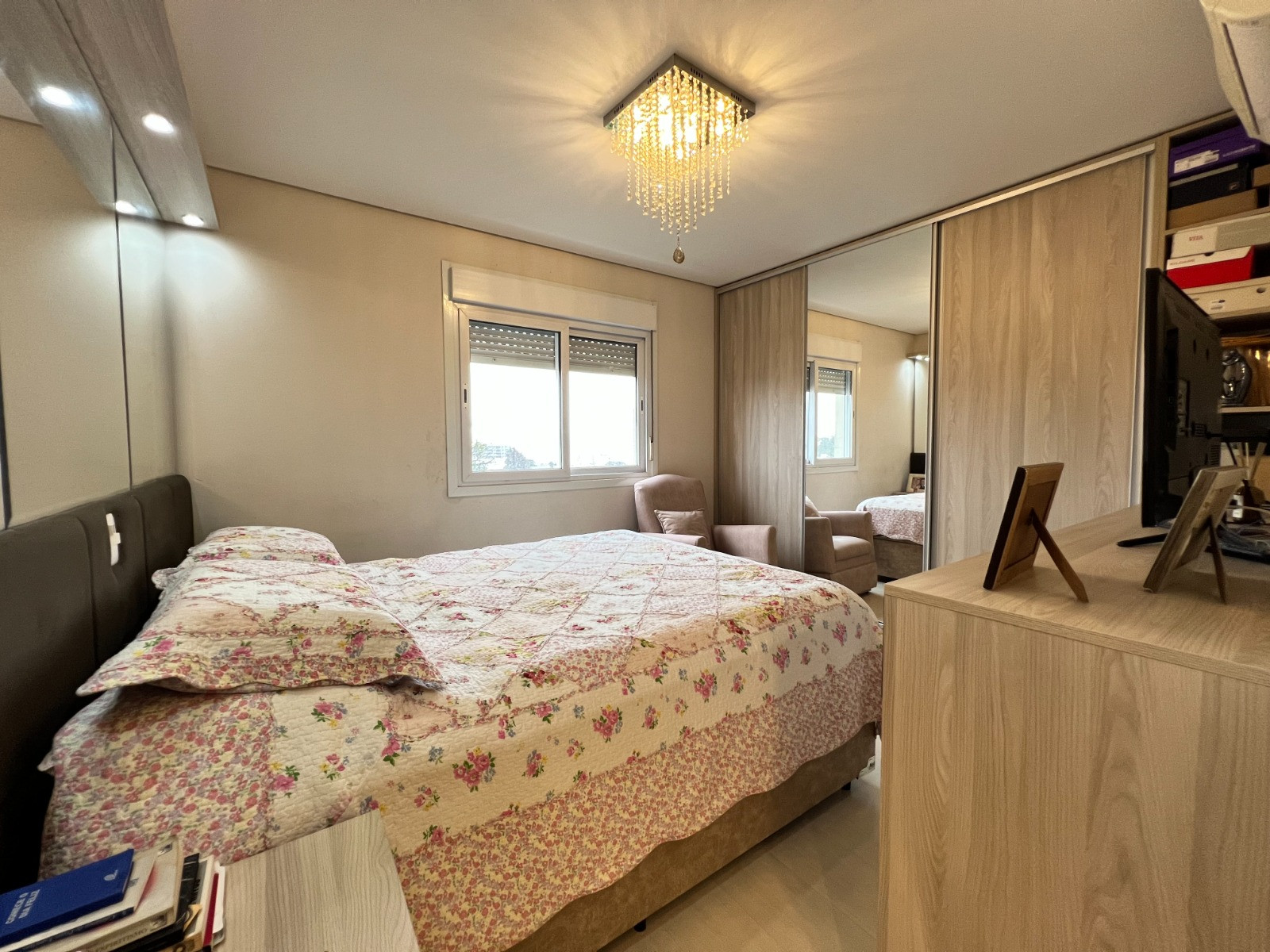 Descrição › Apartamento com 03 dormitórios, sendo 01 suíte, banheiro social, sacada fechada em vidro, amplo living com sala de estar e jantar, cozinha e área de serviço, churrasqueira com bifeteira e vaga dupla de garagem.