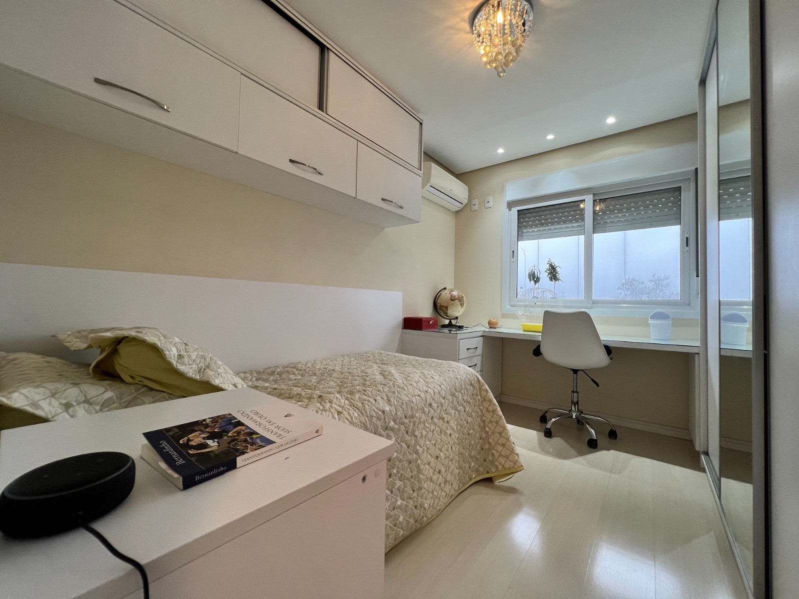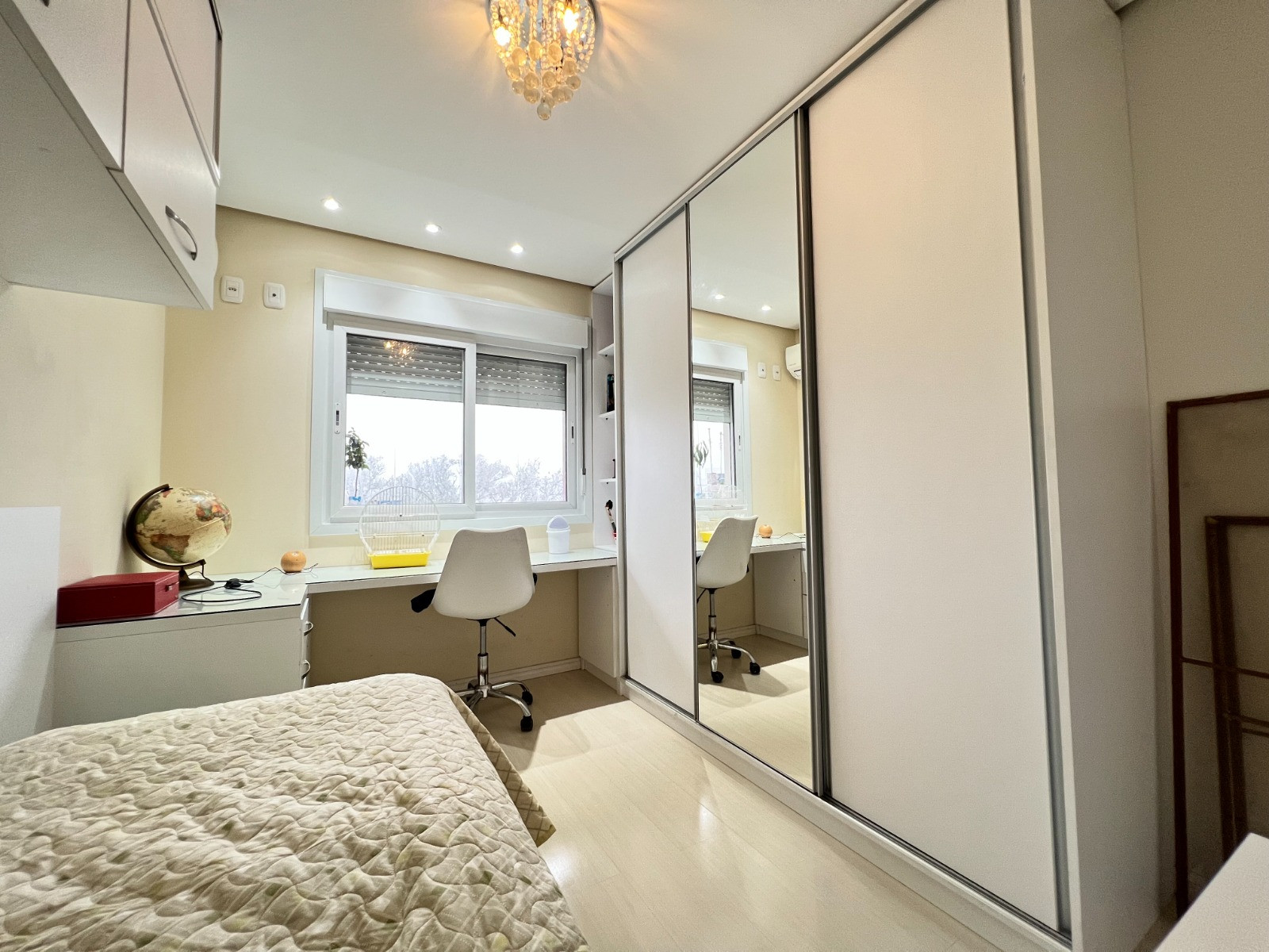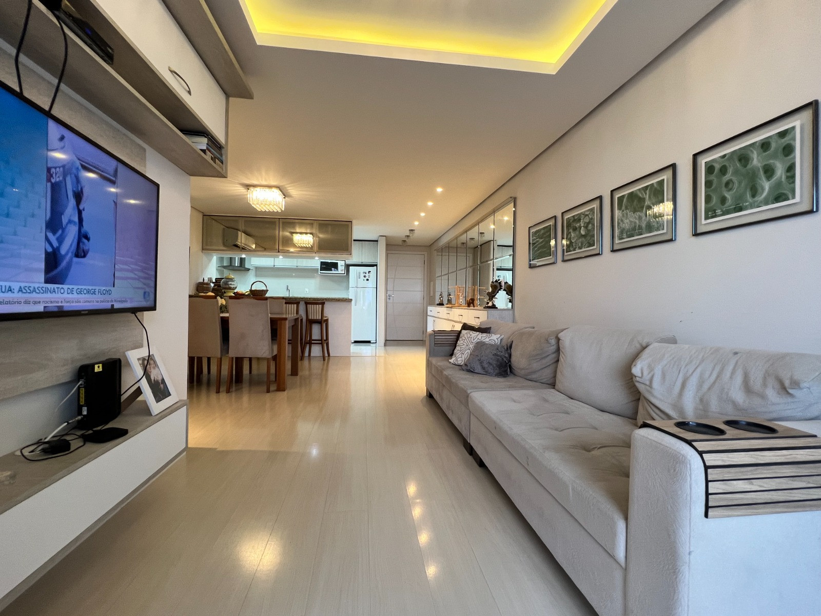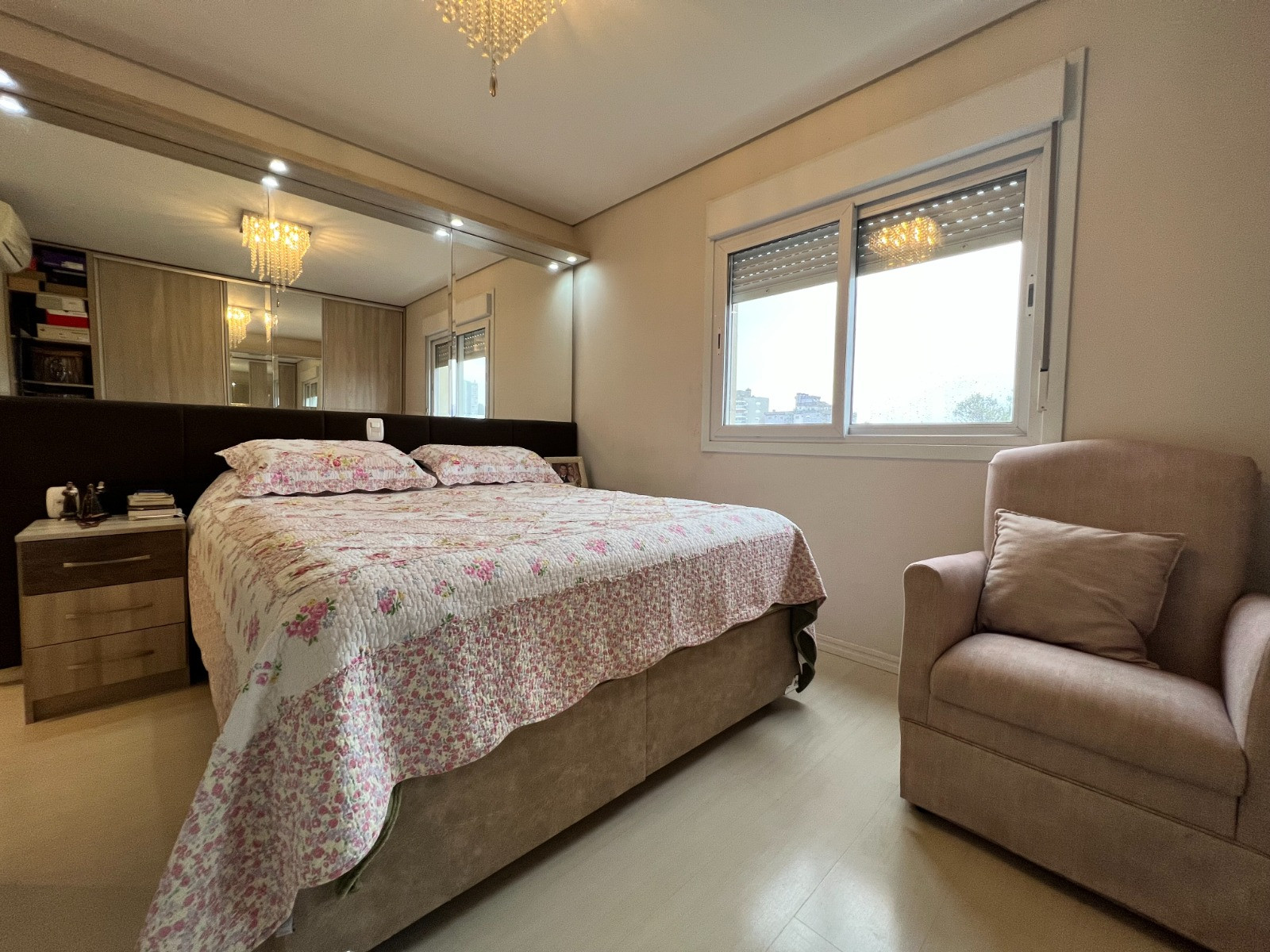 Descrição › Apartamento com 03 dormitórios, sendo 01 suíte, banheiro social, sacada fechada em vidro, amplo living com sala de estar e jantar, cozinha e área de serviço, churrasqueira com bifeteira e vaga dupla de garagem.