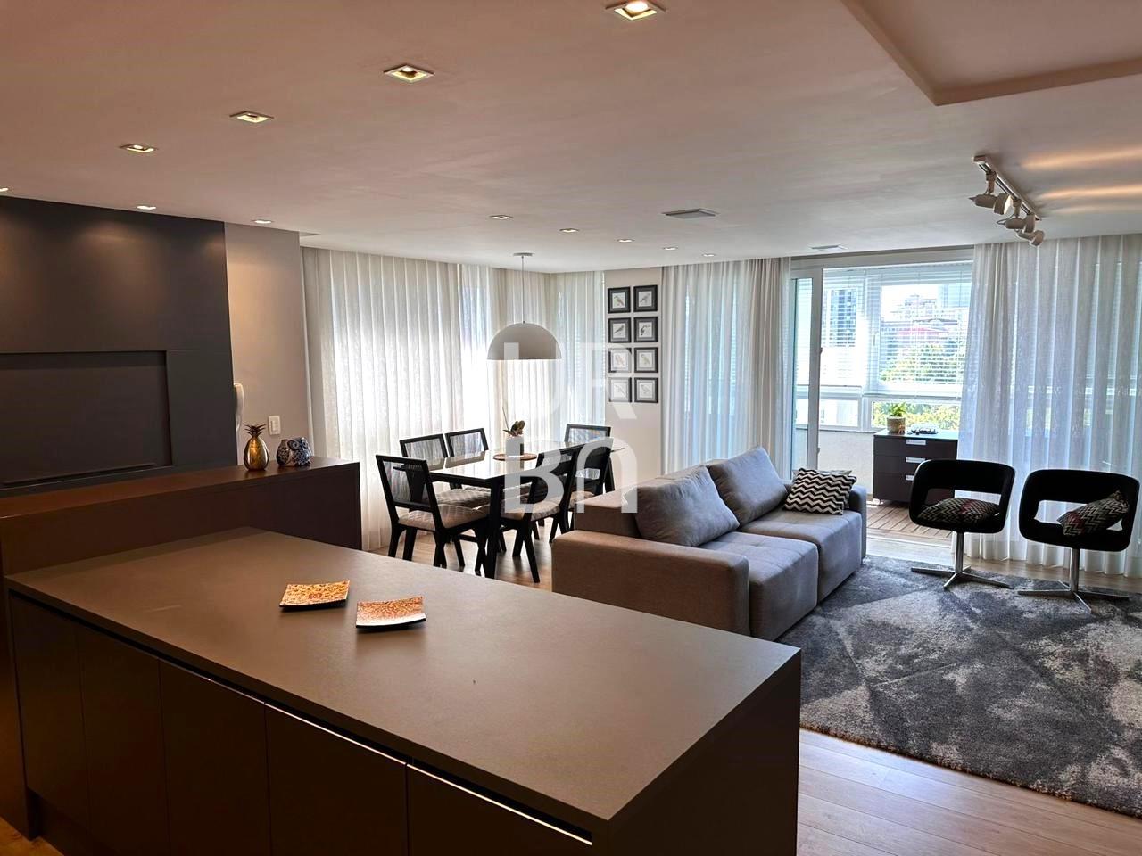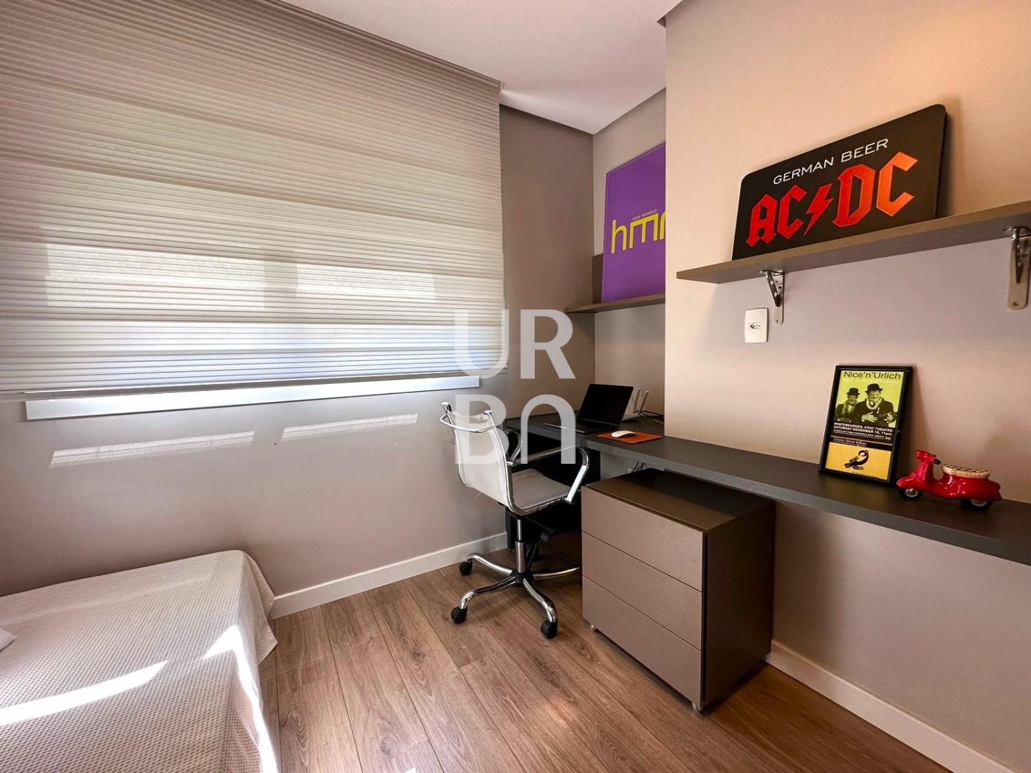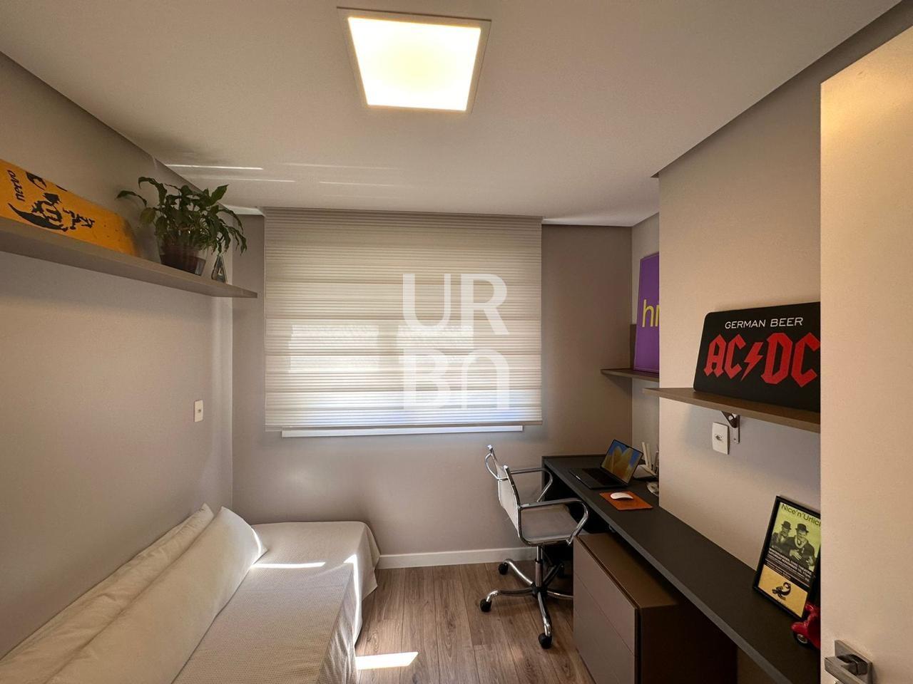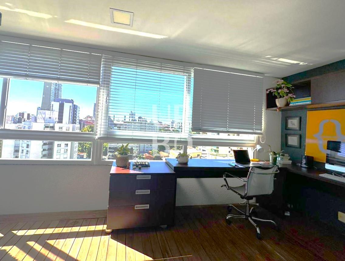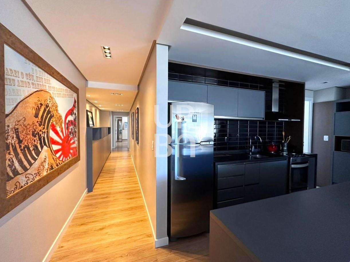 Descrição › Apartamento semi-mobiliado com 3 dormitórios sendo 2 suítes e 1 terceiro dormitório ou gabinete, Posição norte/ oeste proporciona muita iluminação em todas as peças. Possui sala com 2 ambientes com cozinha integrada e churrasqueira. Escritório na sacada fechada com esquadrias em PVC. 3 Vagas individuais de garagem. Permanecem no imóvel todos os móveis fixos. Edifício conta com salão de festas, academia e brinquedoteca mobiliados e equipados.