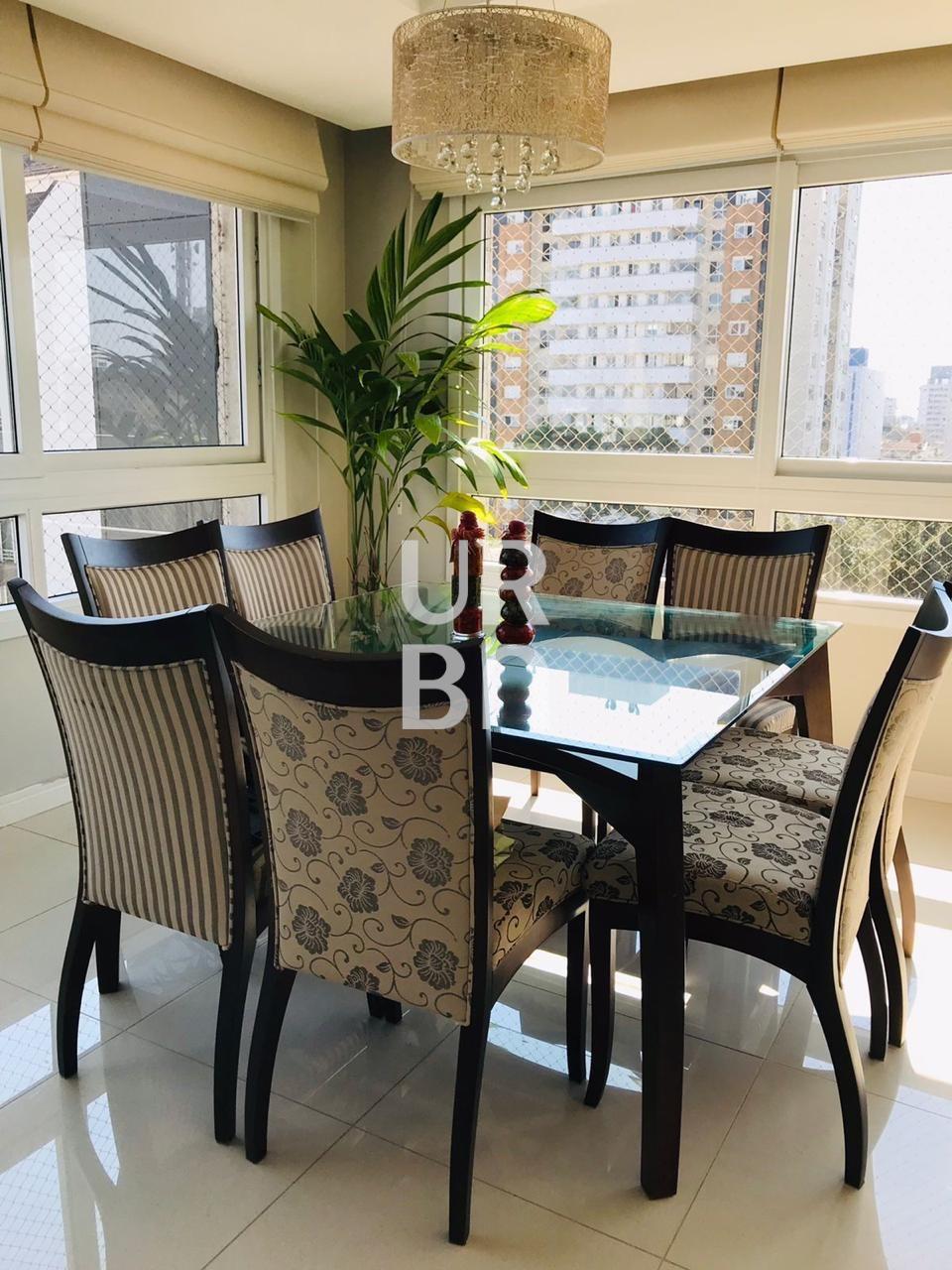 Descrição › Apartamento com 175 m² no Bairro Lourdes. Sala 3 ambientes com cozinha integrada, 3 suítes, semi mobiliado, excelente orientação solar. Cozinha com churrasqueira, vista panorâmica da cidade, 3 vagas de garagem. Prédio com piscina, quadra poliesportiva, 2 salões de festas, portaria remota 24 hs, playground, terraço coletivo e jardins.