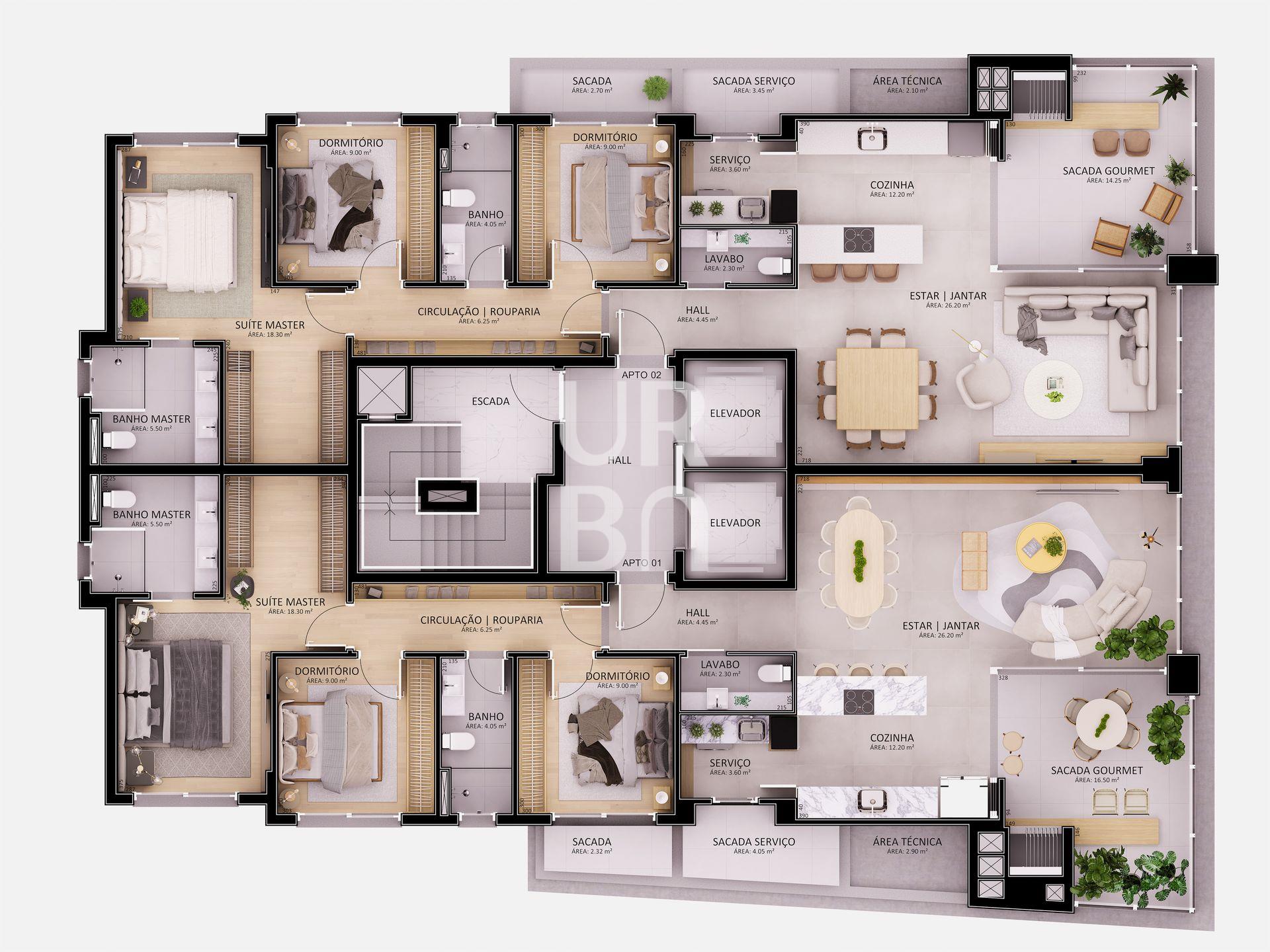Descrição › 153m2 e 146m2 de área privativa