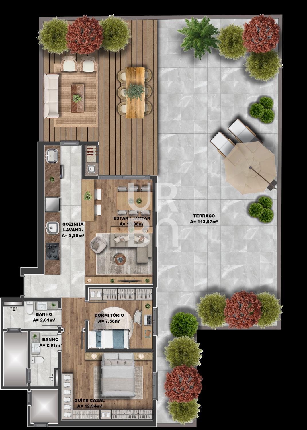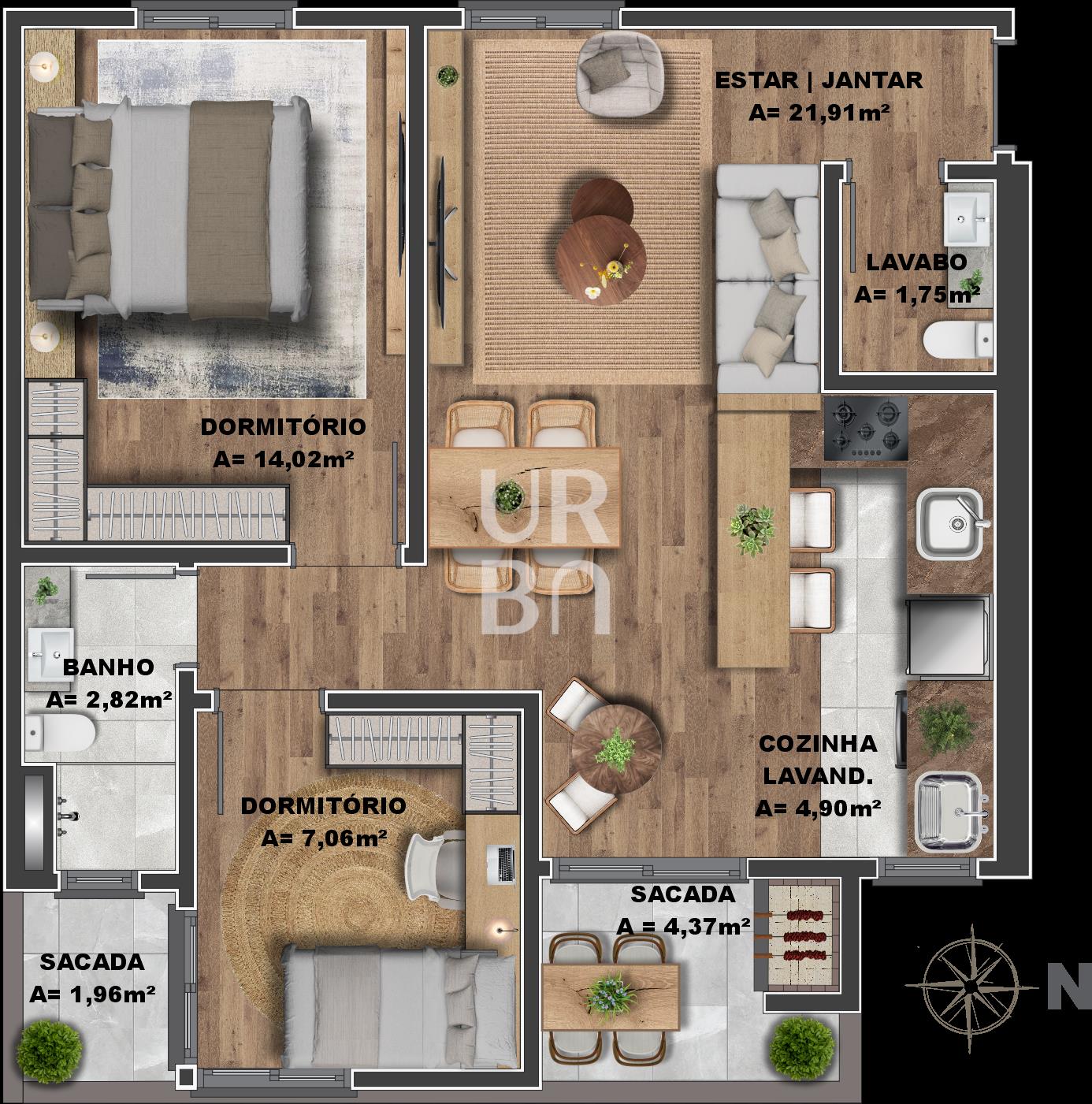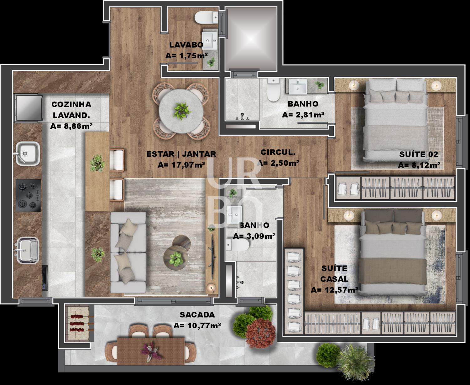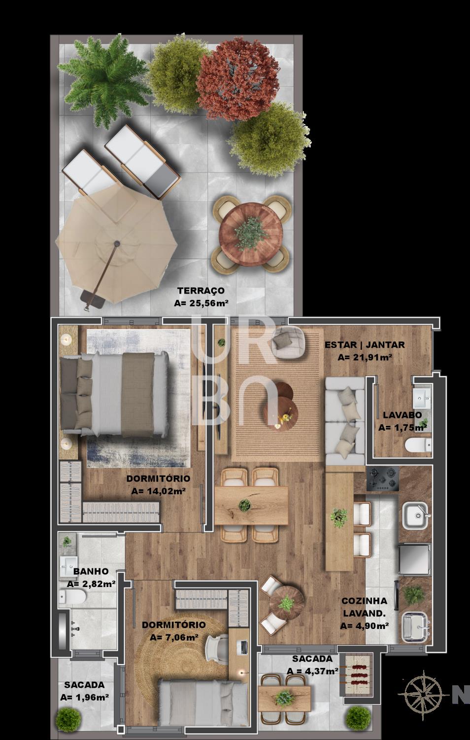 2 Dorm. | 1 Suíte(s) | 1 Box / Vaga(s)