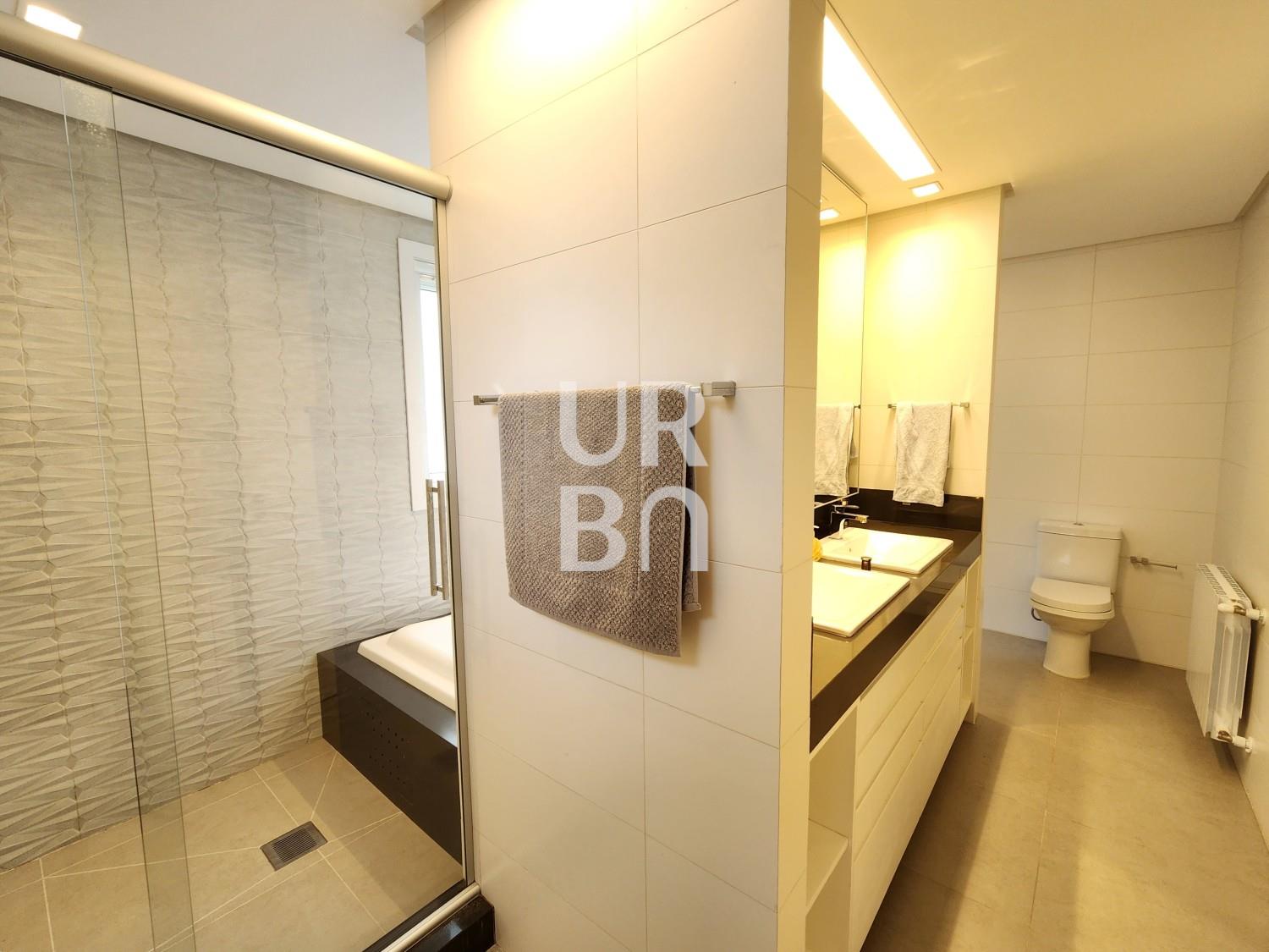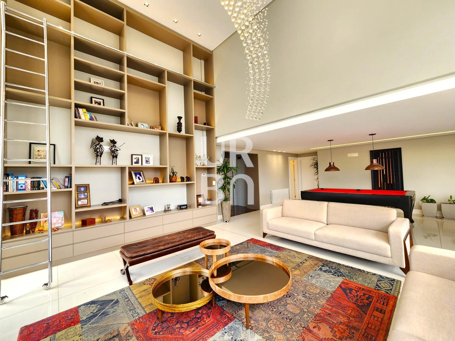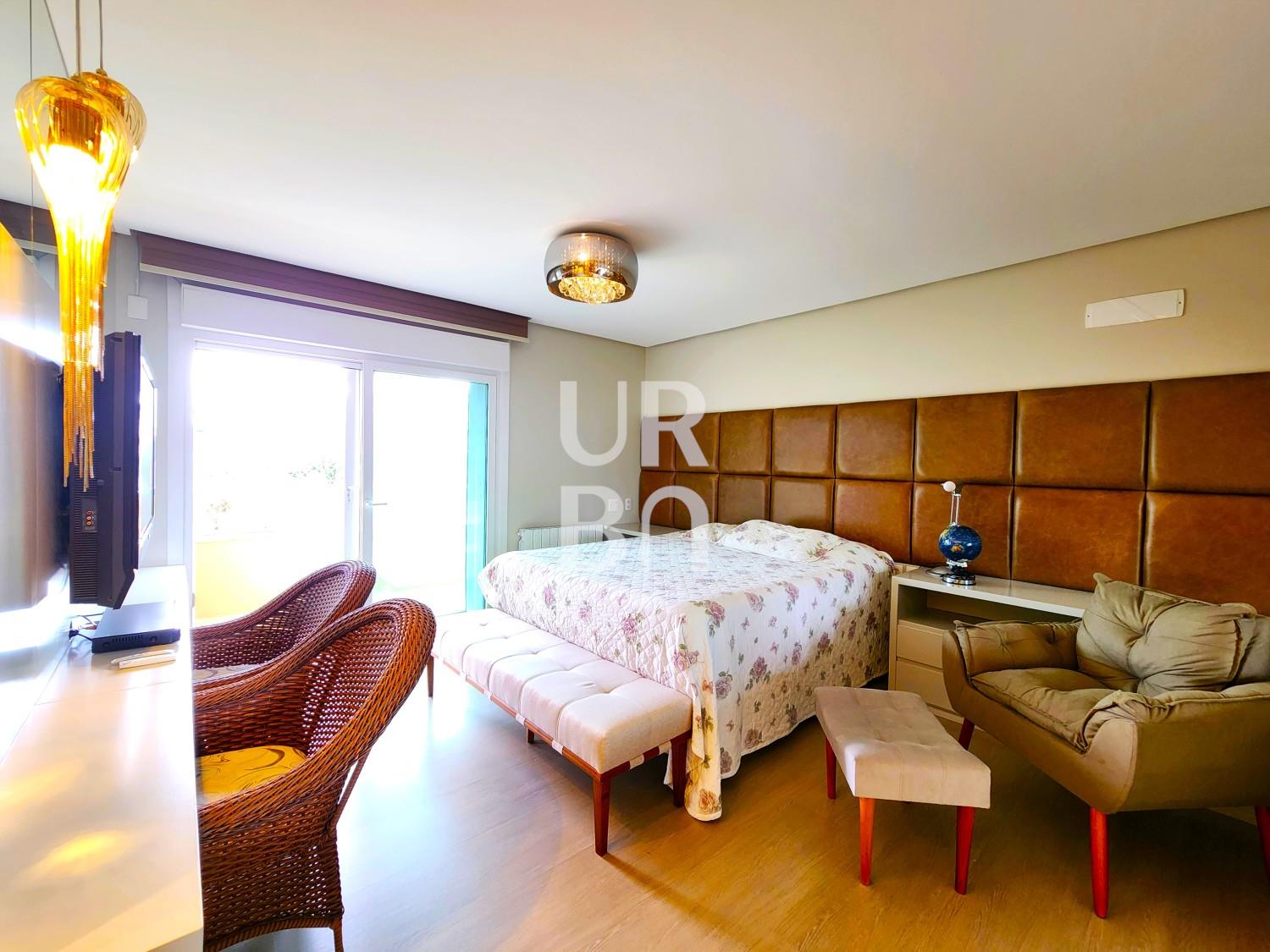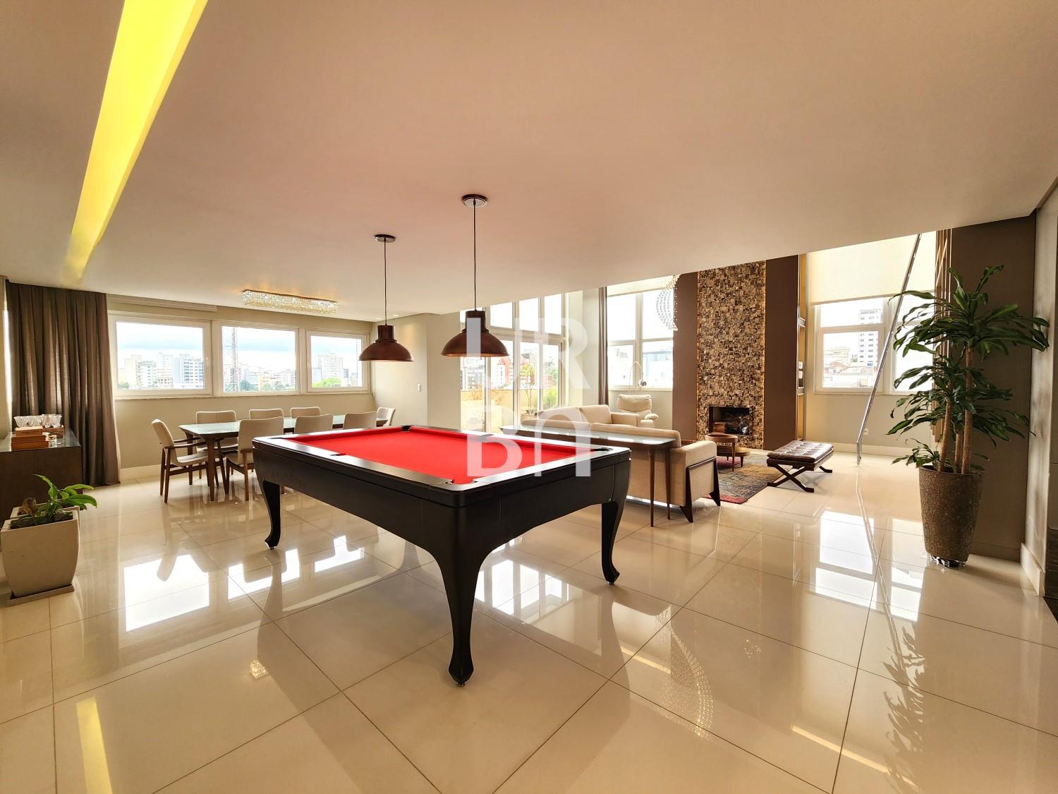 Descrição › Apartamento de alto padrão no Bairro Exposição em Caxias do Sul, 331 m² privativos, 4 suítes, sala 3 ambientes com pé direito duplo com lareira à lenha, sala de TV, ampla cozinha com churrasqueira, mobiliado, 5 vagas de garagem. Condomínio com ampla estrutura de lazer com piscina, quadra poliesportiva, academia, sala de jogos, 2 salões de festas, quiósque, playground, jardins, hall de entrada mobiliado e decorado, portaria 24 hs.