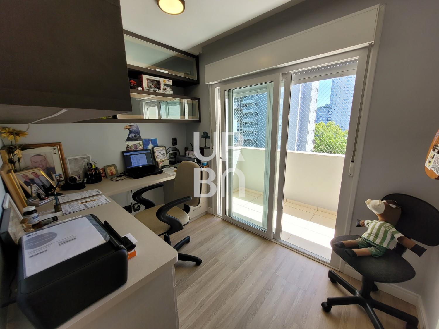 Descrição › Urban Prime vende no coração do bairro Exposição, amplo apartamento, com 2 suítes, escritório, ampla sala de estar e jantar integrada a cozinha, área de serviço separada, ampla sacada fechada com churrasqueira, split instalado, vidros duplos, mobiliado. 3 vagas de garagem.Prédio com salão de festas, brinquedoteca, elevador, portaria 24 hs