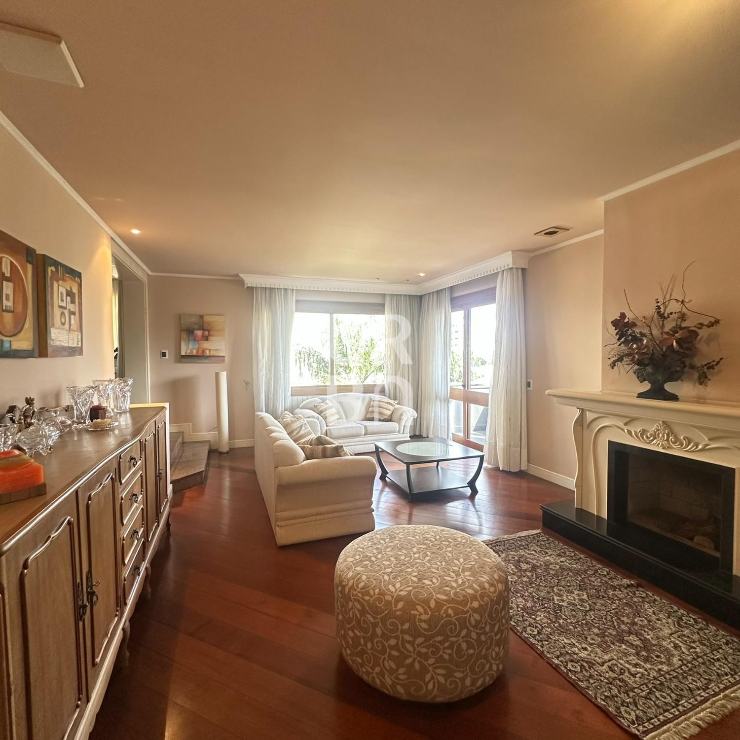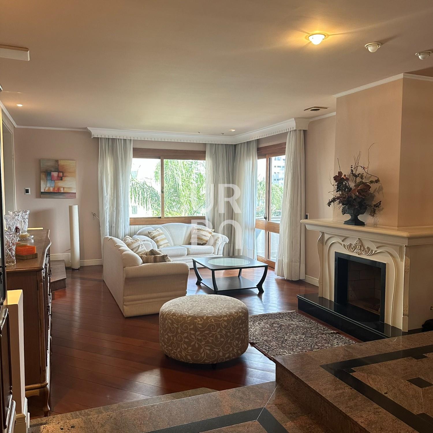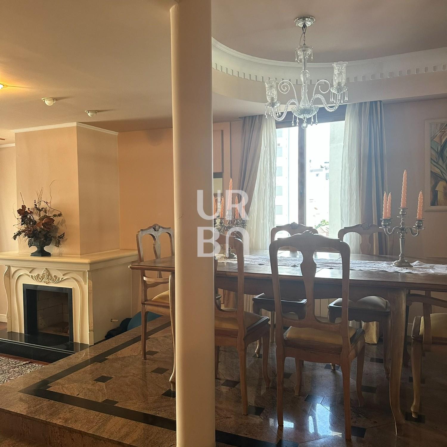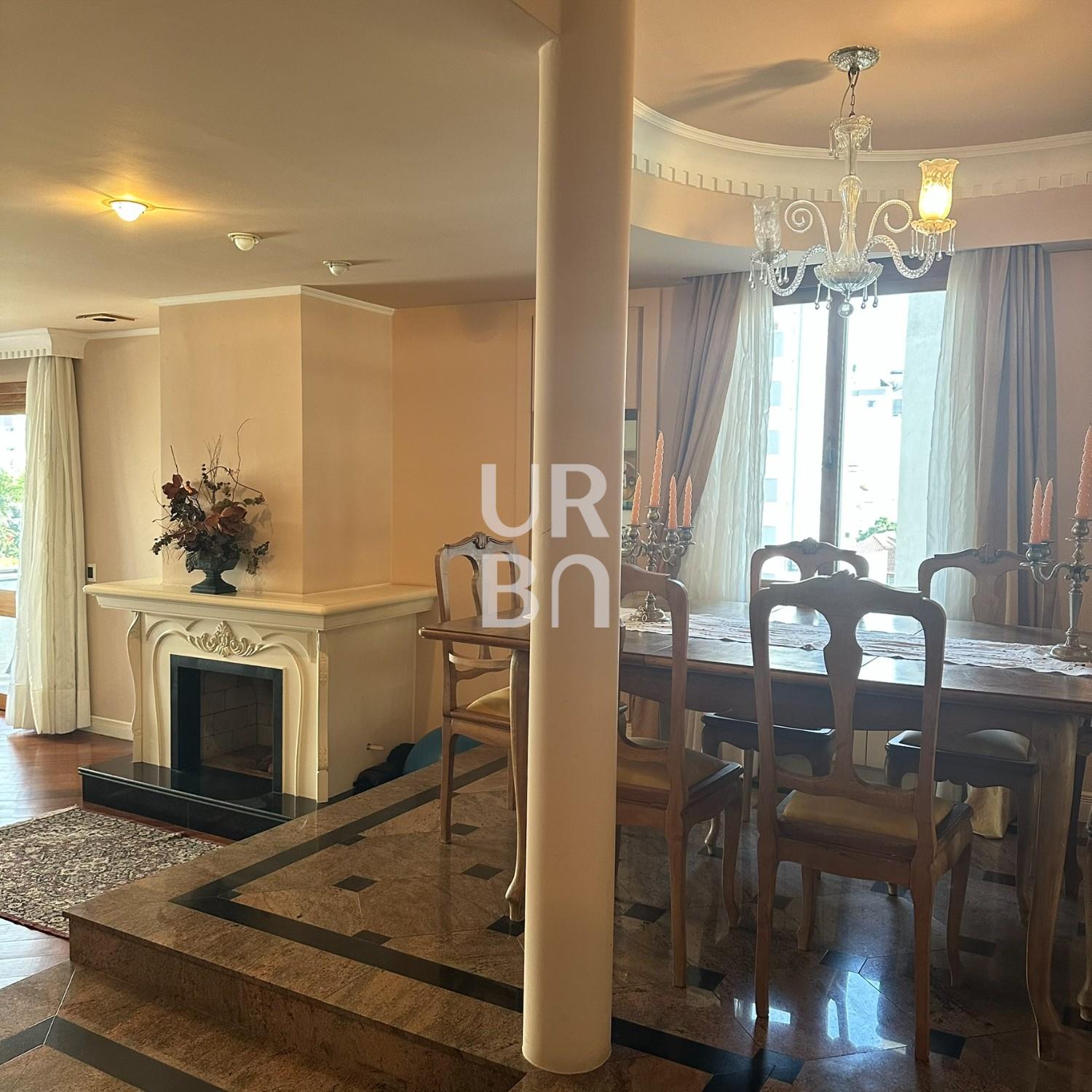 Descrição › Apartamento de Alto Padrão no bairro exposição, são 3 suítes sendo 01 máster com closet e 02 suítes americanas, sala de jantar e estar em desnível, estar com lareira, escritório, sala de TV, cozinha ampla com churrasqueira rotativa e bifeteira, ampla área de serviços com banheiro auxiliar e depósito, lavabo. 3 vagas individuais de garagem e amplo depósito privativo no subsolo. Prédio com elevador, salão de festas, amplo hall de entrada, terraço coletivo com jardins e zelador.