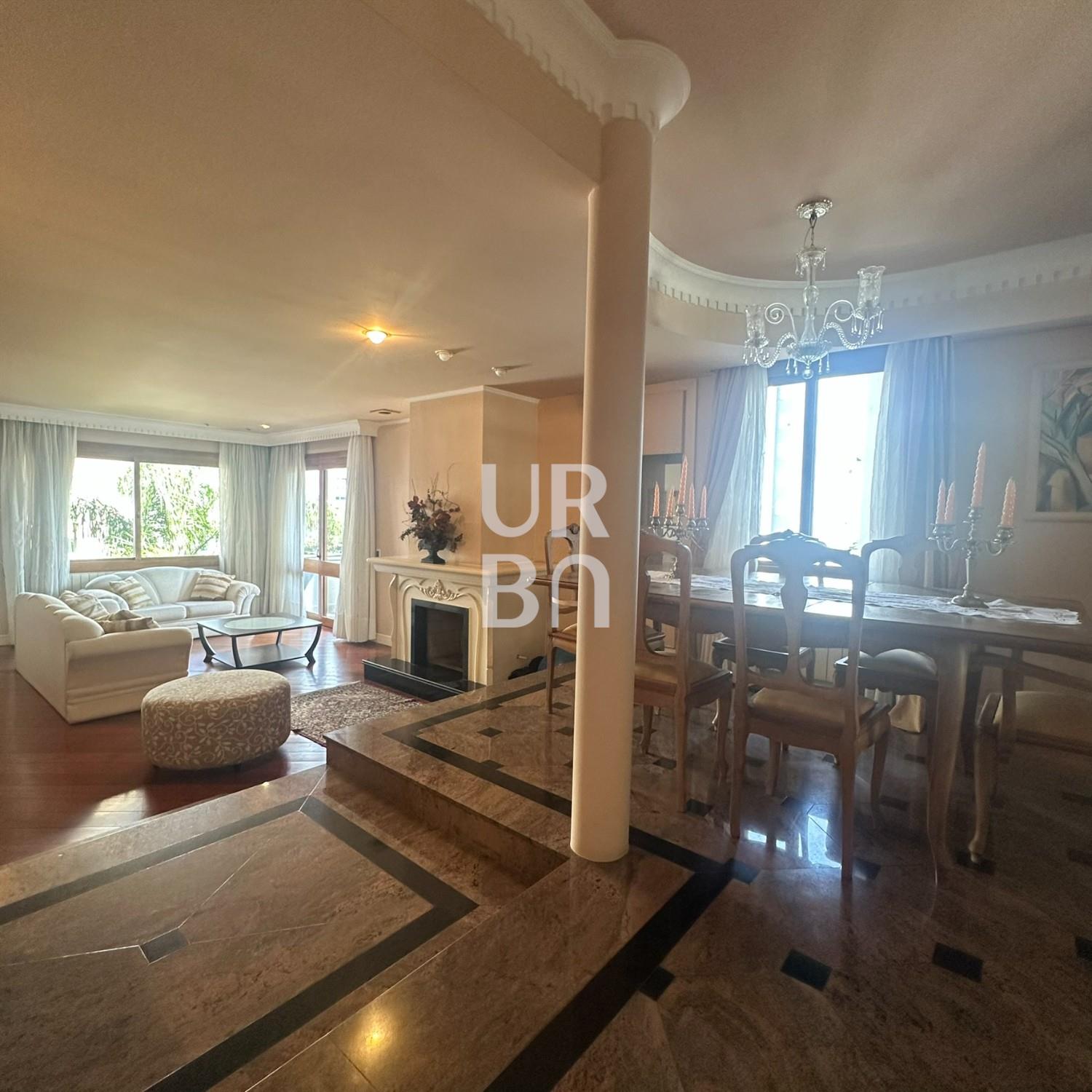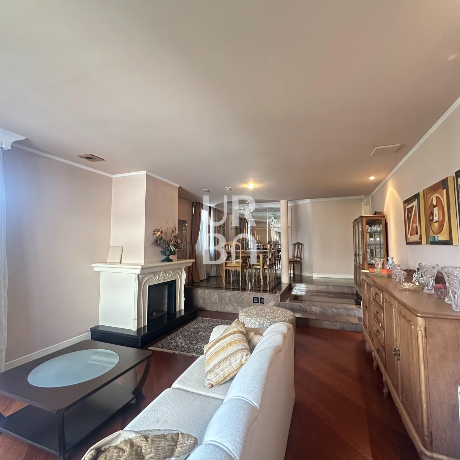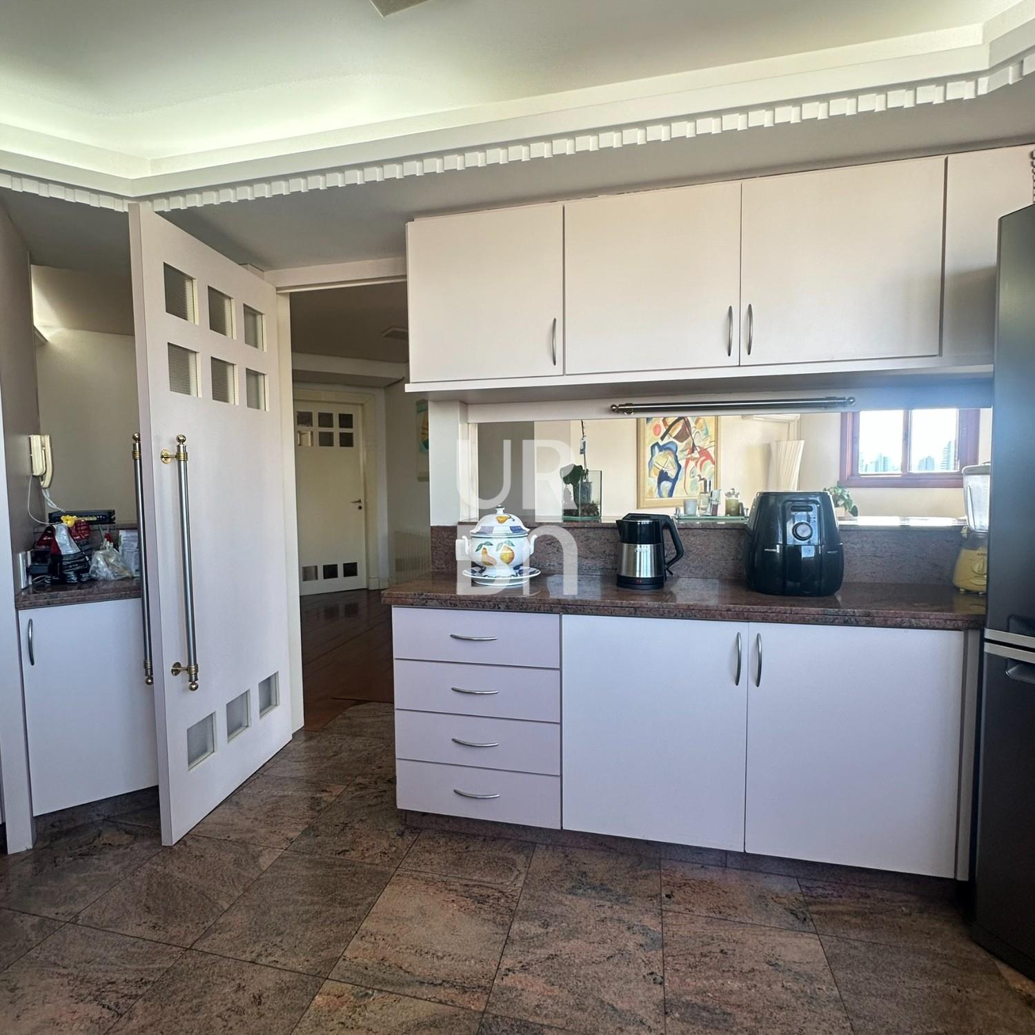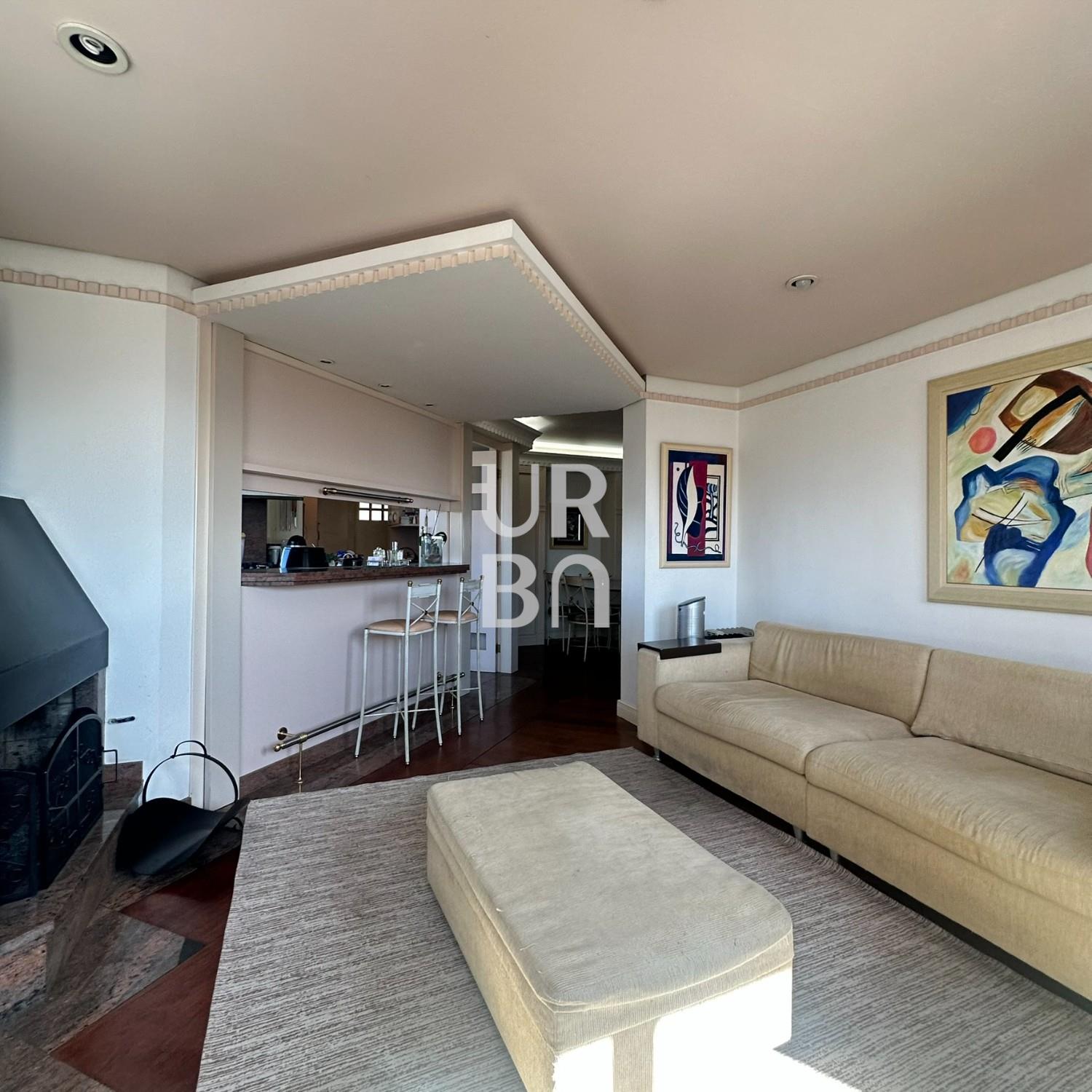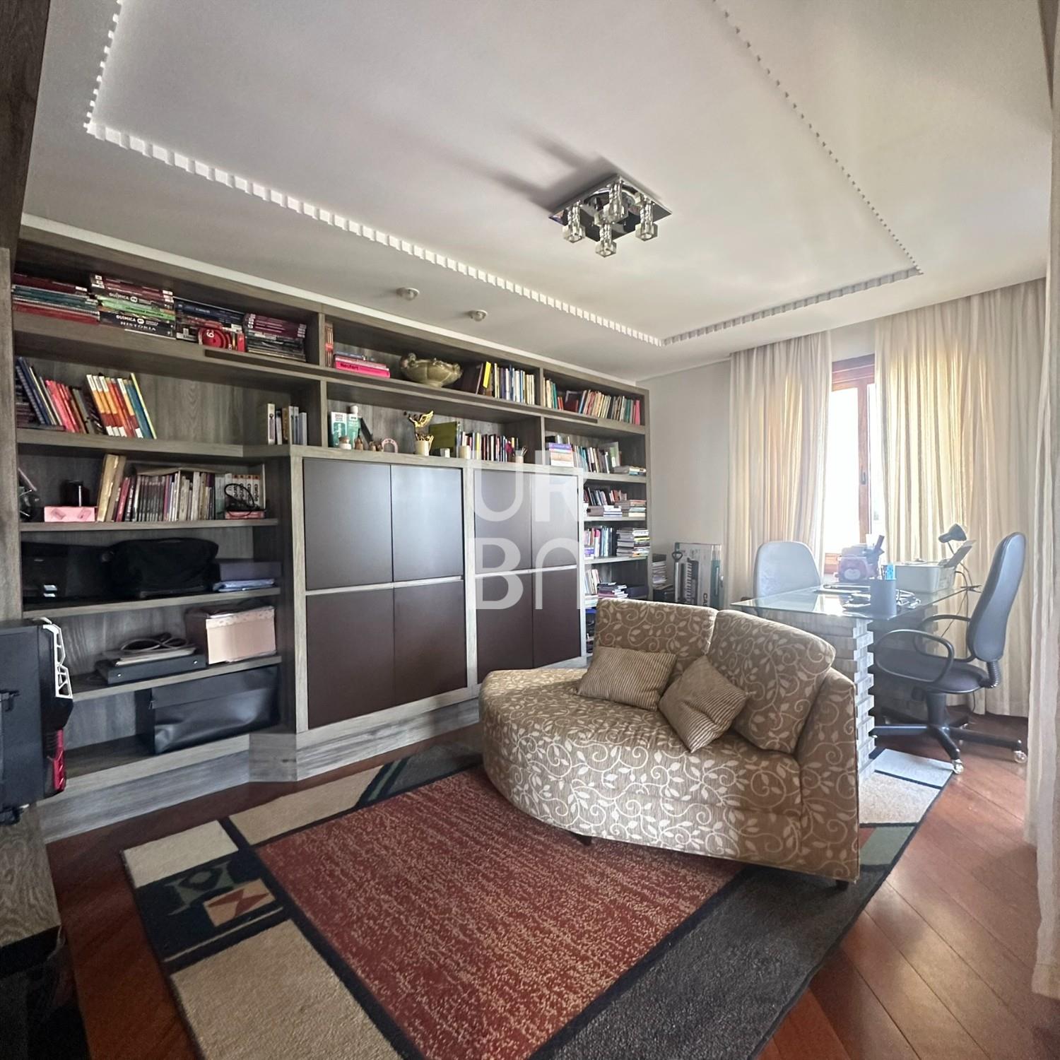 Descrição › Apartamento de Alto Padrão no bairro exposição, são 3 suítes sendo 01 máster com closet e 02 suítes americanas, sala de jantar e estar em desnível, estar com lareira, escritório, sala de TV, cozinha ampla com churrasqueira rotativa e bifeteira, ampla área de serviços com banheiro auxiliar e depósito, lavabo. 3 vagas individuais de garagem e amplo depósito privativo no subsolo. Prédio com elevador, salão de festas, amplo hall de entrada, terraço coletivo com jardins e zelador.