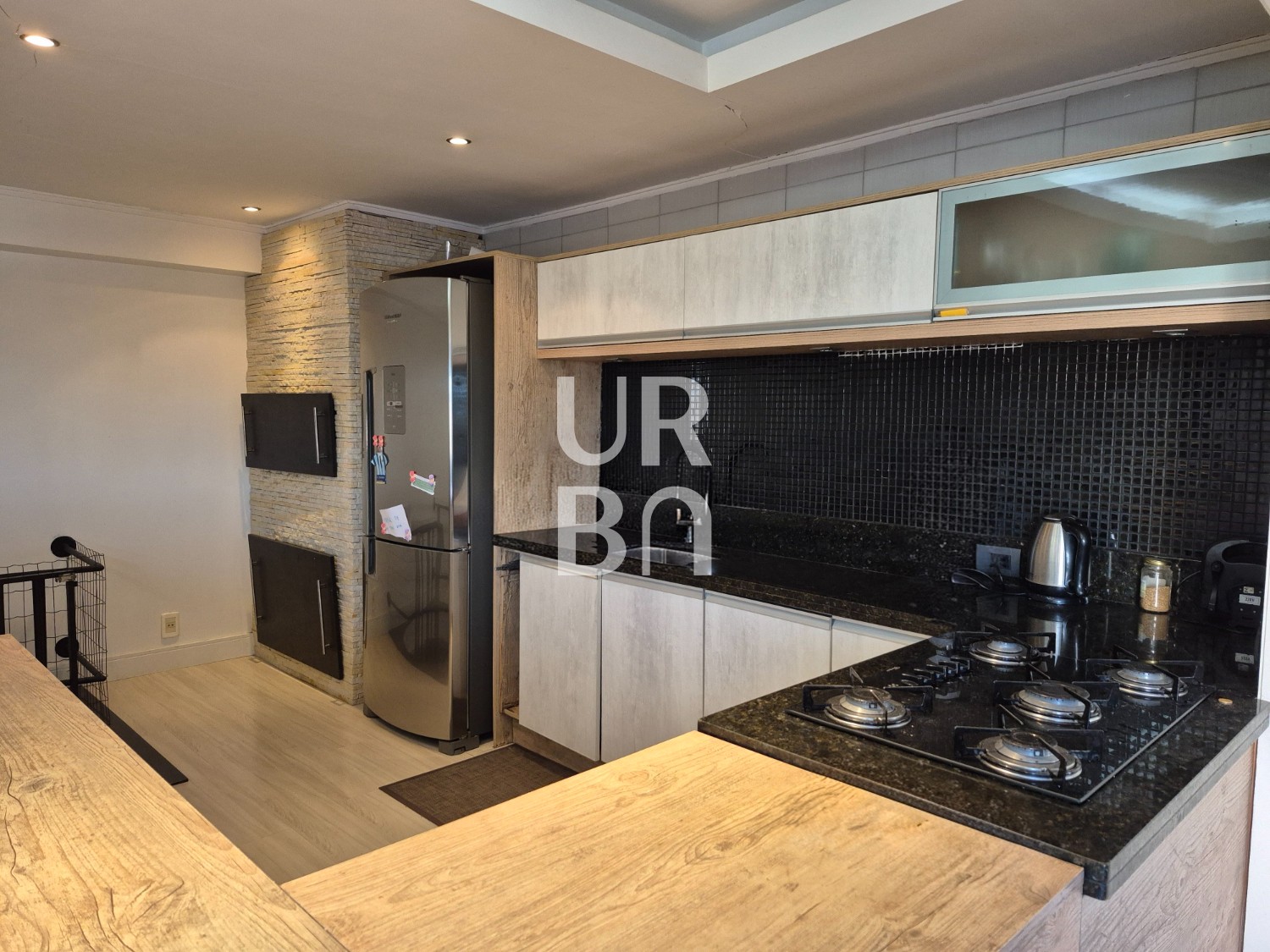 Descrição › Apartamento Duplex com 03 dormitórios, salas de estar e jantar integradas, cozinha, churrasqueira na cozinha, área de serviço, banheiro social, lavabo, terraço, 1 vaga de garagem.